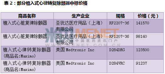 由于当前植入式心律转复除颤器生产技术要求高,在我国市场中暂时被国外企业占领,其价格也因此相对较高,目前产品中标价格主要在10-15万元之间(见表2)。