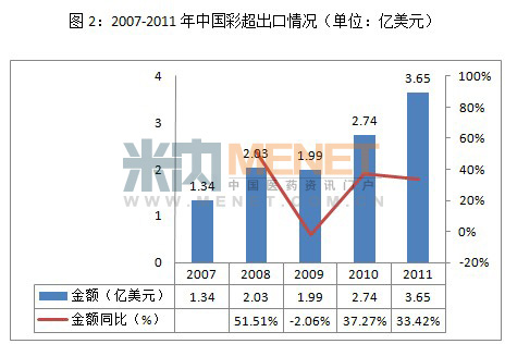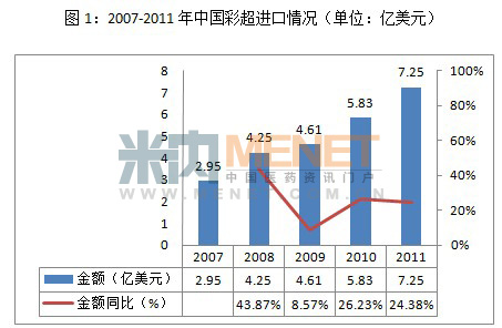 近年来,我国彩超进出口贸易整体呈稳步增长趋势。据中国海关数据显示,截至2011年,中国彩色超声诊断仪进口金额已从2007年的2.95亿美元增长至7.25亿美元,主要通过美国、日本、韩国等国家进口;而出口金额也已达到3.65亿美元,出口额最高的企业包括迈瑞等。 |
