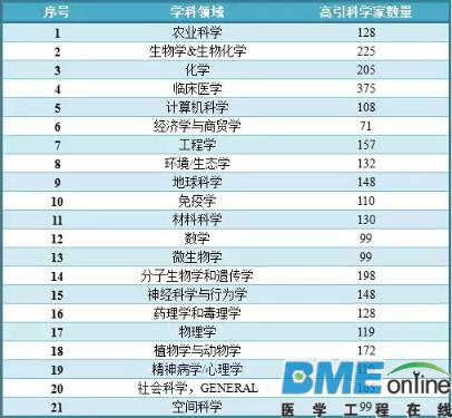 这一研究报告通常被称为“Highly Cited Researchers”,分析了2003-2013年之间各个研究领域超120000篇论文,确定了21个不同科学领域的3000多名领导者以及2015最热科学家或最热研究者(2015’s Top Scientists Or Hottest Researchers)。