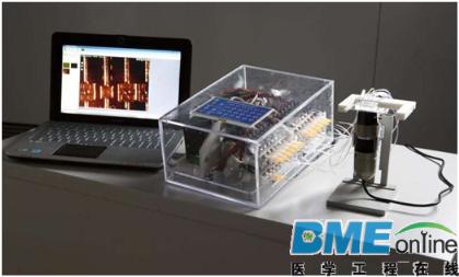 ![]() 这种微流体设备已被用于检测埃博拉病毒。它不需要体积庞大的仪器,因而非常适合用于偏远地区。图品来自Alban Kakulya。 2016年2月29日/生物谷BIOON/--当卫生设施有限的偏远地区发生流行病时,那里的人们需要能够在医院外的地方使用的便携式诊断设备。为了解决对这些设备不断增加的需求,来自瑞士洛桑联邦理工学院(EPFL)的研究人员开发出一种低成本的便携式微流体诊断设备。它已成功地在埃博拉病毒(Ebola)传染病上进行免疫测试,也能够用于检测许多其他疾病。相关研究近期发表在ACS Nano期刊上,论文标题为“A Digital–Analog Microfluidic Platform for Patient-Centric Multiplexed Biomarker Diagnostics of Ultralow Volume Samples”。 在过去的几年,微流体设备已在诊断领域显示出非凡的潜力。它们是由硅橡胶制成的,含有头发丝宽度的微小通道。微流体设备能够快速地检测极少量血液中的许多种不同的生物标志物。 在EPFL,由Sebastian Maerkl领导的生物网络特征实验室(Laboratory of Biological Network Characterization, LBNC)已开发出一种新型的微流体平台。它是一种完全自我维持的依靠电池能源运行的便携式设备。它无缝地与廉价的显微镜一起运作,从而提供非常高水平的检测准确性。这种平台能够在微量血液(小于0.005微升)中定量检测高达16种不同的生物标志物分子。这些生物标志物通常是酶、蛋白、激素或代谢物,它们在血液中的浓度可提供关于病人健康状况的准确信息。 一种微流体平台给出两种检测读出值 ![]() 这种微流体设备是独特的原因在于它是由模拟信号检测装置和数字信号检测装置这两种装置组成的,而迄今为止,常规的设备只整合其中的一种装置。图品来自Alban Kakulya。 这种设备是独特的原因在于它是由模拟信号检测装置和数字信号检测装置这两种装置组成的,而迄今为止,常规的设备只整合其中的一种装置。数字信号检测是高度灵敏的,能够检测单个生物标记物的存在。但是,当生物标志物的浓度太高时,由于信号饱和的原因,它表现欠佳。另一方面,模拟信号检测在较高的生物标记物浓度时表现得最好。同时使用这两种检测装置,就能够在短时间内彻底地分析一滴血中的成分。这种分析提供珍贵的医疗信息:它可能有助医生作出早期诊断或者确定疾病所处的阶段。