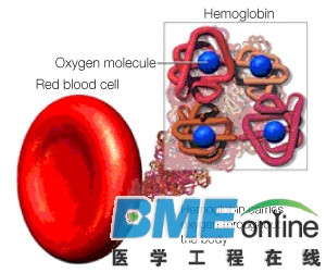 “馅儿”的学名叫血红蛋白,是一种结构很复杂的大分子,人们直到上世纪中期才弄明白它的结构。如果要粗略地描述一下它长什么样儿,可以先想象很多氢原子和碳原子串在一起组成一条长链,然后把长链紧紧地缠起来变成线团,四个这样的线团粘在一起就成了血红蛋白的大模样。最后在每个线团的中央放上一颗二价铁离子,就可以吸引氧气过来结合了。氧气“落入”线团之后,二价铁离子会被氧化成三价,三价铁离子看上去是红色的。这就是为啥动脉血是鲜红色而静脉血是暗红色的,因为动脉血携带的氧气多。