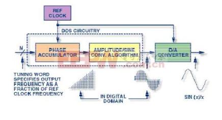 导读:本文主要介绍的是dds的原理,感兴趣的童鞋们快来学习一下吧~~很涨姿势的哦~~ 1.dds原理--简介DDS是直接数字式频率合成器(Direct Digital Synthesizer)的英文缩写,与DSP(数字信号处理)一样,DDS是一项关键的数字化技术。与传统的频率合成器相比,DDS具有低成本、低功耗、高分辨率和快速转换时间等优点,广泛使用在电信与电子仪器领域,是实现设备全数字化的一个关键技术。 ![]() 2.dds原理--特点DDS具有诸多优点,下面小编为大家一一介绍: 1)频率分辨率高、输出频点多、可达2的N次方个频点(N为相位累加器位数); 2)频率切换速度快,可达us量级; 3)频率切换时相位连续; 4)可以输出宽带正交信号; 5)输出相位噪声低,对参考频率源的相位噪声有改善作用; 6)全数字化实现、便于集成、体积小、重量轻。 ![]() 3.dds原理DDS芯片中主要包括频率控制寄存器、高速相位累加器和正弦计算器三个部分。频率控制寄存器可以串行或并行的方式装载并寄存用户输入的频率控制码;而相位累加器根据频率控制码在每个时钟周期内进行相位累加,得到一个相位值;正弦计算器则对该相位值计算数字化正弦波幅度。DDS芯片输出的一般是数字化的正弦波,因此还需经过高速D/A转换器和低通滤波器才能得到一个可用的模拟频率信号。 ![]() 4.dds原理--应用在各行各业的测试应用中,信号源扮演着极为重要的作用。但信号源具有许多不同的类型,不同类型的信号源在功能和特性上各不相同,分别适用于许多不同的应用。波形发生器,函数发生器,RF信号源,以及基本的模拟输出模块。信号源中采用DDS技术在当前的测试测量行业已经逐渐称为一种主流的做法。 ![]() 关键词:相位,频率,信号源,累加器,数字化