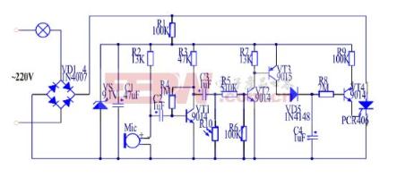 导读:声光控开关其实就是居民楼楼道中照明灯泡所使用的开关,只有当其所感应光度低于某个临界值且声音强度高于某个临界值时,开关被触发,灯泡亮起,当外界环境满足不了对声音和光强的要求时,开关处于闭合状态,灯泡熄灭。这种既高大上又低小下的声光控开关原理究竟是什么呢?跟随小编一起来学习一下吧~ 一、声光控开关原理- -简介声光控开关=声控开关 光控开关,我们可以用这样一个表达式来给声光控开关下定义,既只有当其所涵盖的声控开关及光控开关状态均处于打开状态时声光控开关处于打开状态,所接灯泡发光,当仅有声控开关处于打开状态或仅有光控开关处于打开状态或声控开关和光控开关均处于关闭状态时声光控开关处于关闭状态,所接灯泡不发光。 ![]() 二、声光控开关原理- -结构声光控开关电路主要由整流稳压电路、话筒放大电路、音频放大电路、检波电路、光敏控制电路、可控硅开关PCR406几大部分构成。其中,整流稳压电路主要为电路中其他部分电路的正常运行提供工作电源;话筒放大电路主要用于对声音进行识别,可通过调节该电路中的电容与电阻值的大小来控制声控的灵敏度;音频放大电路主要用于放大话筒放大电路识别出的音频,以满足检波需要;检波电路主要用于将交流的音频信号转换为直流信号;光敏控制电路主要通过光敏电阻来控制信号的传输,以达到光控的效果;可控硅开关PCR406是整个电路的重要组成部分,主要起到开关的作用,控制灯泡的亮和灭。 ![]() 三、声光控开关原理一方面,光敏电阻阻值受光强影响,当有光照情况下,光敏电阻R10非常小,把音频信号短路从而阻止信号的继续传输;而当无光照情况下,光敏电阻R10非常大,相当于开路,音频信号可以不受影响继续向前传输,进而可以达到光控开关的作用。 另一方面,声音经过话筒放大电路以电信号的形式进入电路中,为满足检波需要,通过音频放大电路对电信号进行放大,放大后的音频信号可作用于可控硅控制可控硅的导通与断开。若可控硅处于导通状态,则整个声光控开关导通,灯泡亮起;若可控硅处于断开状态,则整个声光控开关断开,灯泡熄灭。 ![]() 声光控开关原理关键词:开关,声光,电路,灯泡,可控硅