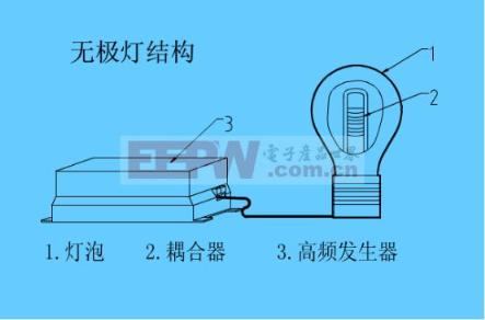 ![]() 二、无极灯原理无极灯由高频发生器、耦合器和灯泡三部分组成。首先,通过高频发生器的电磁场以感应的方式耦合到灯内,使灯泡内的气体雪崩电离形成等离子体;其次,等离子受激原子返回基态时辐射出紫外线;最后,灯泡内壁的荧光粉受到紫外线激发产生可见光以达到照明目的。