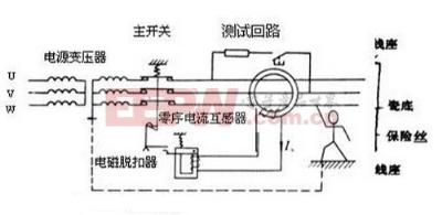 2) 电流型漏电断路器主要用于变压器中性点接地的低压配电系统。其特点是当人身触电时,由零序电流互感器检测出一个漏电电流,使继电器动作,电源开关断开。