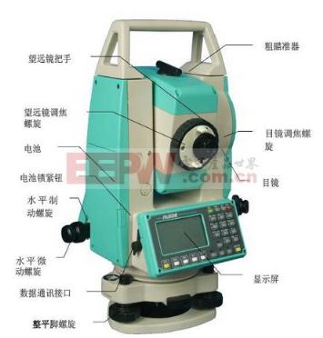 ![]() 三、全站仪原理全站仪主要由测角系统、测距系统、数据处理系统及通讯接口、键盘、电源等部分构成,其中,测角系统用于完成测角功能;测距系统用于完成测距功能;数据处理系统用于完成对数据的自动记录功能;通讯接口用于将内存与计算机连接起来,实现双向信息传输;键盘用于在测量过程中输入数据或操作指令;电源用于给全站仪提供工作所需能量。除此之外,全站仪还可根据需要接入同轴望远镜、双轴自动补偿系统等辅助设施,以增加其可完成功能。