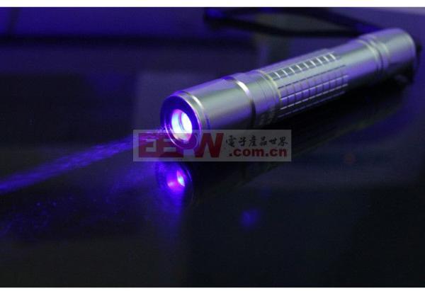 ![]() 激光笔原理——紫光激光笔使用波长405nm的蓝紫色激光二极管,属于半导体激光,接近紫外光波段,可视度较低,但能激发荧光,具有验钞和检验化学品作用。