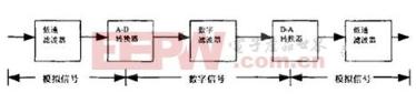 ![]() 其中模拟信号必须利用采样定理进行采样。输入信号经过模拟低通滤波即抗折叠滤波器去掉输入信号中的高频分量。经过平滑化的模拟信号再用于采样。另外D-A转换后模拟信号要经过平滑滤波器进行平滑处理,该工作可用模拟低通滤波器来完成。