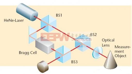 在激光多普勒振动速度测量仪中,由于光往返的原因,fd =2v/λ。这种测振仪在测量时由光学部分将物体的振动转换为相应的多普勒频移,并由光检测器将此频移转换为电信号,再由电路部分作适当处理后送往多普勒信号处理器将多普勒频移信号变换为与振动速度相对应的电信号,最后记录于磁带。