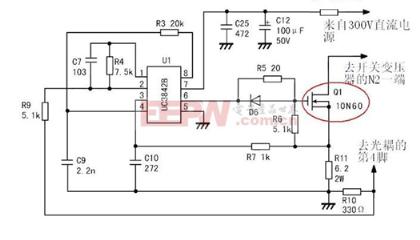 ![]() 3.手机充电器原理手机充电器其实都是由一个稳定电源加上必要的恒流、限压、限时、过冲等控制电路组成。它的原理是:首先AC220电压经由保险丝,NTC和EMI滤波整流滤波变换至300V左右的直流电压,经启动电阻提供给3842(7脚)初始工作电压,驱动MOS管开关动作,开关变压器在MOS管 的开关作用下,会不断的储存->释放,而使输出绕组感应到的电能经过整流滤波输出的直流电压,通过采样到431或运放控制光耦把信号反馈至 3842的1脚或2脚,控制3842的输出(6脚)的占空比,以达到稳定的输出电压值。