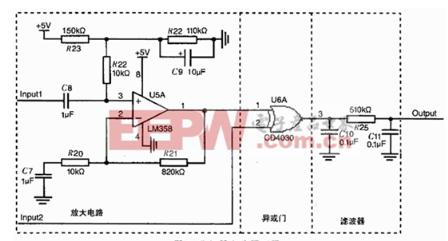 导读:鉴相器,顾名思义,就是能够鉴别出输入信号的相差的器件,但是鉴相器的原理是什么呢?下面小编就为大家讲解一下,感兴趣的盆友们快来学习一下吧~~~很涨姿势的哦~~~ 1.鉴相器原理--简介鉴相器,就是能够鉴别出输入信号的相差的器件,是使输出电压与两个输入信号之间的相位差有确定关系的电路。它是PLL,即锁相环的重要组成部分。鉴相器是一个混频器或者模拟乘法器,它的输出是输入电压信号的乘积,其中包含了两个输入信号的相差信息。鉴相器是锁相环电路的一个关键部件。相差检测在多种应用中均具有重要的作用,如电机控制,雷达与通信系统,伺服系统以及解调器等。 ![]() 2.鉴相器原理--分类鉴相器是锁相环的基本部件之一,也用于调频和调相信号的解调。鉴相器可以分为模拟鉴相器和数字鉴相器两种。二极管平衡鉴相器是一种模拟鉴相器。两个输入的正弦信号的和与差分别加于检波二极管,检波后的电位差即为鉴相器的输出电压。其鉴相特性通常为余弦型的。鉴频鉴相器是一种数字鉴相器。两个输入信号是脉冲序列,其前沿(或后沿)分别代表各自的相位。比较这两个脉冲序列的频率和相位即可得到与相位差有关的输出。 ![]() 3.鉴相器原理鉴相器是要精确测量出两相物理量的相位差的电路,而这是只需要判断出这两相量是同相还是反相即可。其原理是:相位的比较必须要输入两路信号,一路是经模拟开关选通、放大后的信号;另一路为偶极子电流源的电阻R上的电位,这样必定有19个表面电极的电位与该电位同相,与另外19个表面电极反相。两路信号经放大、限幅后,送到“异或门”进行逻辑异或运算。 上图为鉴相器的原理图,信号从Input1、Input2输入到异或门,经异或门逻辑运算后,信号有毛刺产生,所以在其后加了一级II型滤波电路,有效地去除了毛刺,保证了信号的准确性。RMS有效值转换采用单片真有效值/直流转换器AD637,输出的结果连接到PCI数据采集卡上,由计算机进行数据处理,同时计算机还对模拟开关进行通道控制。 ![]() 关键词:信号,输入,相位差,输出,相位