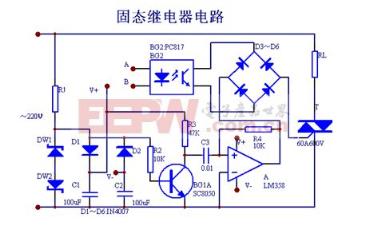导读:本文主要讲述的是固态继电器的原理,感兴趣的盆友们快来学习一下吧~~~很涨姿势的哦~~~ 1.固态继电器原理--简介固态继电器,其英文名称为Solid State Relay,缩写SSR,也被称作固态开关,是由微电子电路、分立电子器件、电力电子功率器件组成的无触点开关,是一种两个接线端为输入端,另两个接线端为输出端的四端器件,中间采用隔离器件实现输入输出的电隔离。固态继电器的输入端用微小的控制信号,达到直接驱动大电流负载。 ![]() 2.固态继电器原理--功能固态继电器是一类具有隔离功能的无触点电子开关,在开关过程中无机械接触部件,因此固态继电器除具有与电磁继电器一样的功能外,还具有逻辑电路兼容,耐振耐机械冲击,安装位置无限制,具有良好的防潮防霉防腐蚀性能,在防爆和防止臭氧污染方面的性能也极佳,输入功率小,灵敏度高,控制功率小,电磁兼容性好,噪声低和工作频率高等特点。 ![]() 3.固态继电器原理下面以交流固态为例来说明其工作原理。如下图所示,从DW1、DW2上取出的削顶正弦信号经反相器BG1输出方波再经运算放大器A输出尖峰脉冲信号。尖峰脉冲加在D3~D6的交流对角线与SCR的控制极和阴极间,D3~D6的直流对角线接在光电耦合器的输出端。当从A、B输入的是低压小电流信号时,二极管发光,光敏管导通,于是从A运算放大器中输出的尖峰脉冲触发SCR导通,角载RL得电。A、B无信号输入时,光电耦合器BG2截止,尖峰脉冲通不过而使SCR不能导通。 ![]() 关键词:固态,继电器,尖峰,脉冲,输出