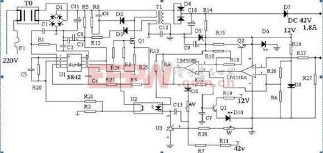 导读:充电器想必对大家来说都不陌生了,小到还没有上学的小朋友,大到在安享晚年的老年人,已经到了一种无人不知、无人不晓的境界。那么充电器究竟是如何工作的呢?它是如何将电量补充进我们的电子设备中的呢?用莎士比亚的话来说,That is a question,下面就让我们一起来研究一下吧~~ 一、充电器原理- -充电器是什么?充电器,英文名称为charger,是一种利用高频电源技术来实现对电量不足的用电设备进行充电的仪器,在我们现实生活中常见的有手机充电器、电动车充电器、充电宝等,随着科技的日益发展,又出现了无线充电这种较为高大上的技术以方便我们的使用,接下来我们就针对这几种常见的充电器,对其工作原理做以详细介绍。 ![]() 二、充电器原理- -手机充电器手机充电器,一种专门为手机补充电量的设备,根据其使用方式的不同可分为旅行充电器、维护型充电器和座式充电器,根据手机系统的不同可分为苹果手机充电器和安卓手机充电器,根据其USB接口的不同也可分为各种不同的充电器,不过所有的手机充电器都是由稳压电源、恒流电路、限压电路、限时电路、过冲电路等几大部分构成的,其中稳压电源处于一个极其重要的位置,主要用于提供稳定的工作电压和工作电流。 ![]() 三、充电器原理- -电动车充电器我们常将电动车中存储电量的部分称为电瓶,而电动车充电器就是一种专门为电瓶补充电量的设备。电动车充电器常采用开关电源式充电器,其原理图如下: ![]() 在该图中220V的交流电先经双向滤波器T0完成对干扰信号的控制,再经桥式整流器D1进行整流,最后经滤波器C11形成300V左右的直流电。其中,U1为TL3842脉宽调制集成电路,可通过2脚(电压反馈)调节充电器输出电压,可通过调整电阻箱R25的阻值来实现对3脚最大电流的控制,4脚用于接R1(振荡电阻)和C1(振荡电压),5脚用于接电源负极,可通过6脚(脉冲输出信号)驱动场效应管Q1,7脚用于接电源正极。T1为高频脉冲变压器,主要用于将高压脉冲转换为低压脉冲,起到隔离的作用并为U1的正常工作提供能量。 ![]() 四、充电器原理- -无线充电无线充电技术又称为非接触式感应充电,是一种利用电感耦合的原理在无需数据线的情况下进行充电的技术,其根据工作原理的不同可分为三种,一种是电磁感应式无线充电技术,在初级线圈内产生交流电,电磁感应现象使得次级线圈中也产生电流,进而完成能量由发送端至接收端的传递;第二种是磁场共振式无线充电技术,当频率相同发生共振现象时,能量发送装置与能量接收装置便可完成能量的交换;第三种是无线电波式无线充电技术,微波接收装置可以接收到由微波发射装置发出并经墙壁弹回的微波能量,并在整个过程中保持直流电压的稳定。 ![]() 充电器原理关键词:充电器,充电,电量,能量,电压