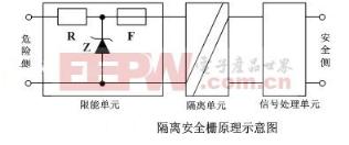 导读:提起安全栅不少同学可能比较陌生,但在工业控制、仪器仪表等领域简直大名鼎鼎,可以这么说,在工业控制中需要安全防爆的场合几乎没他不行,其主要功能为限流限压,保证现场仪表可得到的能量在安全范围内。既然安全栅如此重要,下面就让我们来学习一下安全栅的两种基本结构及原理,感兴趣的同学关注一下吧。。。 1. 安全栅原理—简介安全栅一般出现在本安系统中,首先介绍一个电气知识,本质安全是系统防爆技术,指通过设计等手段使生产设备或生产系统本身具有安全性,即使在误操作或发生故障的情况下也不会造成事故的功能。而安全栅是本安防爆系统中最常用的关联设备。 安全栅是介于现场设备和控制室之间的一个回路限制能量的电路,如下图所示。其基本功能有两个:第一使危险场所的本安设备能正常工作;第二用来把控制室供给现场仪表的电能量限制在既不能产生足以引爆危险气体的火花的范围,又不能产生足以引爆危险气体的仪表表面温度的范围,即使本安设备自身发生故障,只要安全栅的限流限压电路工作正常,也不会产生任何足以引燃爆炸环境的火花或表面温度。因此无论安全场所的控制室设备还是危险场所的本安设备发生故障,整个系统在电路上都会处于本质上的安全状态,不会产生爆炸。 ![]() 由于安全栅被设计为介于现场设备与控制室设备之间的一个限制能量的接口,因此无论控制室设备处于正常或故障状态,安全栅都能确保通过它传送给现场设备的能量是本质安全的。 ![]() 2. 安全栅原理—分类安全栅作为控制室的非本安设备与危险场所的本安设备之间的关联设备,是本安爆系统中的重要组成部分,安全栅按结构分为齐纳式安全栅和隔离式安全栅两大类。 1)、齐纳式安全栅 齐纳式安全栅采用在电路回路中串联快速熔断丝、限流电阻和并联限压齐纳二极管实现能量的限制,保证危险区仪表与安全区仪表信号连接时安全限能。它采用器件非常少、体积小、价格低,但也有一些致命的缺陷,使应用范围受到较大的限制。 ![]() 2)、隔离式安全栅 隔离式安全栅采用了将输入、输出以及电源三方之间相互电气隔离的电路结构,不但有限能功能,还有隔离功能,同时符合本安型限制能量的要求,它主要由回路限能单元、信号、电源隔离单元和信号处理单元组成。与齐纳式安全相比,虽然价格较贵,但它性能上的突出优点却为用户应用带来了更大的受益其基本功能框图如下: ![]() 对比齐纳式和隔离式安全栅的特点和性能后可以看出,隔离式安全栅有着突出的优点和更为广泛用途,虽然其价格略高于齐纳式安全栅,但从设计、施工安装、调试及维护成本来考虑,其综合成本可能反而低于齐纳式安全栅。在要求较高的工程现场几乎无一例外地采用了隔离式安全栅作为主要本安防爆仪表,隔离式安全栅已逐渐取代了齐纳式安全栅,在安全防爆领域得到了日益广泛的应用。 ![]() 3. 安全栅原理—工作原理安全栅的主要功能就是限制安全场所的危险能量进入危险场所,及限制送往危险场所的电压和电流,下面具体分析两种安全栅的工作原理: 齐纳安全栅的稳压二极管限制了从非本安端传到本安端的电压,电阻限制了电流,快速熔断器用于保护稳压二极管不被过大的电流烧坏。通过电路的限压和限流,把传输到危险区的能量限制在安全值之内。它的特点是电路元器件少,故障率低,成本低,回路信号保真性好,但由于必须加限能电阻再加上智能变送器的采样电阻,过大的电压降低往往会导致回路供电不足,而且在工程中要可靠接地,否则会失去防爆安全保护功能。如下图所示: ![]() 齐纳管Z用于限制电压。当回路电压接近安全限压值时,齐纳管导通,使齐纳管两端的电压始终保持在安全限压值以下。电阻R用于限制电流。当电压被限制后,适当选择电阻值,可将回路电流限制在安全限流值以下。 与齐纳安全栅相比,隔离式安全栅除具有限压与限流的作用之外,还带有电流隔离的功能。隔离式安全栅以安全栅的电路作为本安电路,实现限流和限压,并用脉冲变压器或光电器件隔离本安电路与非本安电路,它容易实现信号一入两出等分配功能,因为电源、输入、输出相互隔离,组成系统时不需要接地,信号完全浮空,检测和控制回路的信号稳定性和抗干扰能力大大加强,从而提高了整个系统的可靠性。如下图所示: ![]() 其核心的电路为安全栅基本限能电路,隔离单元包括变压器隔离组件、模频转换和频模转换电路,信号处理单元则根据各种隔离栅功能要求进行信号处理。隔离栅通常由回路限能单元、电流隔离单元和信号处理单元三部分组成,其中回路限能单元为安全栅的核心部分。此外,辅助有用于驱动现场仪表的回路供电电路和用于仪表信号采集的检测电路。信号处理单元则根据安全栅的功能要求进行信号处理。 安全栅原理相关文章推荐阅读: 1.安全栅—EEPW百科 2.智能化的模拟量隔离式安全栅 |