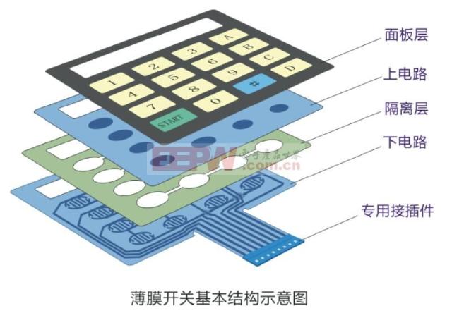 导读:薄膜开关听起来相当专业,其实通俗的就是面板式按键,这个名字就比较熟悉了,很多设备的控制面板都使用薄膜开关,其广泛应用在电子通讯、电子测量的仪器,工业控制,医疗设备,汽车工业,智能玩具,家用电器等领域。古人云:知其然知其所以然。下面小编就和大家一起就学习薄膜开关的基本结构及工作原理。。。 1. 薄膜开关原理—简介薄膜开关是具有一定弹性的绝缘材料层组成的一种多层结构(平面)型(非制锁)按键开关,集按键、指示元件、仪器面板等功能为一体。薄膜开关的动作只由弹性薄膜的垂直方向弹动实现,弹性薄膜虽然经过百万次的蠕动,且蠕动时的幅度很小,仅为0.1-0.3MM,加之材料选择的合理性,因此薄膜材料能够承受一百万次以上的大寿命而不变形,这些都是决定了薄膜开关的耐久性。 薄膜开关的外形美观,使用寿命长,结构简单,安装方便,使用手感良好,占用面积较小等特点,而被广泛应用于各行各业,小到家电用品到高科技产品,慢慢的替代了部份轻触开关的市场,在市场占有一极大的份额。 ![]() 2. 薄膜开关原理—基本结构一般来说,常见的薄膜开关主要由6层材料组成,按照从表到里的顺序分别是面板、面胶、上电路、隔离层、下电路、底胶。下面分别介绍各层结构: 1) 面板:面板是整个薄膜开关的“外衣”,在适当安排好按键的基础上,通过不同的颜色、图案、按键形状,对整个薄膜开关起到必要的装饰作用。面板层最主要的作用在于起标识和按键作用,所以选用材料必须具有高透明度、高油墨附着力、高弹性、防折性等特点。 2) 上电路、下电路:上、下电路是薄膜开关的电器组成部分,也是开关的“关”“键”所在,其性能直接影响到开关电器性能的好坏,主要是由在薄膜上印上一层导电材料而形成。上、下电路担当的是开关闭合所必备的两个触电角色,其厚度一般在0.05--0.175MM以内,最常见的是用0.125MM PET。 3) 面胶、隔离层、底胶:这三层结构的材料都是双面胶,由于在开关结构中所处的位置不同而有不同的名称。三层双面胶由各自所处的层次不同而有不同的厚度,这个主要是根据开关的厚度、按键的操作力来决定的。 ![]() 3. 薄膜开关原理—工作原理薄膜开关的基本工作原理如下:当面板未被按下时,薄膜开关处于常规状态,其上、下触点呈断开状态,隔离层对上下线路起隔离作用;当面板被按下时,上电路的触点向下变形,与下线路重合并使线路导通,导通后的线路给外部连接仪器(基材)以信号,从而实现其相应的功能;当手指松开后,上电路触点反弹回来,电路断开,回路触发一个信号。 ![]() 看完以上的文章,相信您一定对薄膜开关结构和原理有了进一步的了解,相关的知识还有很多很多,小编精心选取了三篇关于薄膜开关的文章,希望大家多多学习,强化对薄膜开关的了解。。。 薄膜开关原理关键词: