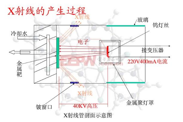 导读:相信绝大多数同学都有在医院拍过X光片的经历,不管是CR、DR、CT还是乳腺机、数字胃肠、血管造影(DSA)等,其核心结构仍然是X光机。X光机的应用已有数十年历史,X线机的结构和形式,随着科学技术的发展和使用要求的不同而有很大差别,但其产生X线的原理都是一样的。下面就让我们来认识一下X光机的基本结构和原理。。。 1. X光机原理—简介X-ray是由伦琴教授在1895年所发现,这种由真空管发出能穿透物体的辐射线,在电磁光谱上能量较可见光强、波长较短、频率较高。根据X线的产生原理,人们研制出了一整套将电能转变为X线能的装置,该装置是X线机中最重要的组成部分,能根据不同需要产生量和质可随意控制的X线束。 X光机是产生X光的设备,其主要由X光球管和X光机电源以及控制电路等组成,高压电源的高压输出端分别夹在阴极灯丝和阳极靶两端,提供一个高压电场使灯丝上活跃的电子加速流向阳极靶,形成一个高速的电子流,轰击阳极靶面后,99%转化为热量,1%由于康普顿效应产生X射线。X光机广泛应用于医疗卫生、科学教育、工业各个领域,如X光机可用于医院协助医生诊断疾病,用于工业的无损探伤,火车站和机场的安全检查等等。 ![]() 2. X光机原理—结构1) 电源电路:x线机的总电源。外电源经电源开关,熔断器后,使自耦变压器得电。 2) X线球管:X线球管可谓X线机的心脏,它是产生X线的关键部件。是一个高真空器件,产生X线的实质是能量转换,根据产生X线的条件,高速电子所携带的能量,在遭到急剧阻挡后,大部分转变为热能,很小的一部分能量转变为X线,X线球管是一个转换效率极低的能量转换元件,在此过程中大约有99%左右的能量被转换成热能而被浪费掉,不仅如此,人们为了解决这大量的热带来的问题又投入了较大的精力去研究如何散热,尽管如此,X线的作用和影响仍然是非常重要的。 3) 高压发生器:高压发生器是X线机主机系统的重要组成部分。它的作用,一是将由自耦变压器输入的初级交流低电压升高数百倍,再经整流后输出,为X线管两极提供直流高压;二是将初级电路输入的交流电压降压后输出,为X线管灯丝提供加热电流;三是完成管电压、灯丝加热电流在不同负载间的切换。 4) 高压绝缘电缆:在中、大型X线机中,高压发生器和X线管是分离部件,两者之间通过2根特制的导线连接在一起,这种输送高压的导线称为高压绝缘电缆。高压电缆构造上要求除具有一定的耐压性能外,还要尽可能减少截面积,使其轻便和柔软。 5) 控制台:x线机基本电路中,结构最复杂,各机型差异最大的。 6) 机械装置及辅助设备:主要是电动诊视床电路,x线管支持装置电路,点片定位电路。 ![]() 3. X光机原理—工作原理利用X线具有穿透性、荧光性和摄影效应的特性,使人体在介质上形成影像,由于人体组织有密度和厚度的差别,当X线穿透人体不同组织时,X线被吸收的程度不同,所以到达介质上的X线的量就有差异,形成黑白对比不同的影像。 高速运动的电子与物体碰撞时,发生能量转换,电子的运动受阻失去动能,其中99%的能量转换为热量,而1%的能量转换为X射线。 ![]() 概括起来,产生X线必须具备3个条件: 1) 要有一个电子源。能根据需要,随时提供足够数量的电子,这些电子在电场作用下奔向阳极,便形成管电流。这个电子源在阴极端。 2) 要有一个能经受高速电子撞击而产生X线的靶,即阳极。 3) 高速电子流。为获得高速电子流需具备2个条件,其一是有一个由高电压产生的强电场,使电子从中获得高速运动的能量;其二是有一真空度较高的空间,以使电子在运动中不受气体分子的阻挡和电离放电而降低能量,同时,也能保护灯丝不致因氧化而被烧毁。 ![]() X光机原理关键词: