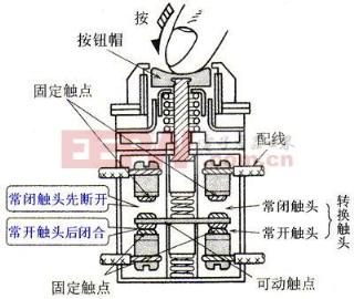 导读: 提起按钮(按键)开关,相信很多人并不会感到陌生,几乎每天都会碰到各种按钮开关,比如一些家用电器、医疗设备上都会有。但如果让您对其的结构、原理说出个所以然,估计会有不少人会一头雾水。今天,小编就为大家讲讲按钮的结构和开关原理。。。 ![]() 1. 按钮开关原理—简介按钮开关简称按钮,通常用来接通和断开控制电路,它是电力拖动中一种发出指令的低压电器,应用十分广泛的一种主令电器,在电气自动控制电路中,用于手动发出控制信号以控制接触器、继电器、电磁起动器等。其特点是安装在工作进行中的机器、仪表中,大部分时间是处于初始自由状态的位置上,只是在有要求时才在外力作用下转换到第二种状态(位置),当外力一旦除去,由于弹簧的作用,开关就又回到初始位置。 按钮开关可以完成启动、停止、正反转、变速以及互锁等基本控制。通常每一个按钮开关有两对触点。每对触点由一个常开触点和一个常闭触点组成。当按下按钮,两对触点同时动作,常闭触点断开,常开触点闭合。 为了标明各个按钮的作用,避免误操作,通常将按钮帽做成不同的颜色,以示区别,如下图所示。其颜色有红、绿、黑、黄、蓝、白等。如,红色表示停止按钮,绿色表示起动按钮等。按钮开关的主要参数、型式、安装孔尺寸、触头数量及触头的电流容量,在产品说明书中都有详细说明。 ![]() 2. 按钮开关原理—结构按钮一般由按钮帽、复位弹簧、桥式动触头、静触头、支柱连杆及外壳等部分组成。 按钮不受外力作用(即静态)时触头的分合状态,分为启动按钮(即常开按钮)、停止按钮(即常闭按钮)和复合按钮(即常开、常闭触头组合为一体的按钮)。 对启动按钮而言,按下按钮帽时触头闭合,松开后触头自动断开复位;停止按钮则相反,按下按扭帽时触头分开,松开后触头自动闭合复位。复合按钮是按下按钮帽时,桥式动触头向下运动,使常闭触头先断开后,常开触头才闭合;当松开按钮帽时,则常开常开触头先分断复位后,常开触头再闭合复位。 ![]() 3. 按钮开关原理—工作原理按键开关的工作原理比较好理解,原理如下图所示。直白的说来就是这样的:里面有一个电磁铁的吸附装置,当你把按键按下去之后,里边的电磁铁就代电产生磁性,然后通过这个吸附装置把电路接通或者断开。从而实现了线路的远程控制等功能。 按键不受外力作用(即静态)时触头的分合状态,分为启动按键(即常开按键)、停止按键(即常闭按键)和复合按键(即常开、常闭触头组合为一体的按键)。 对启动按键而言,按下按键帽时触头闭合,松开后触头自动断开复位;停止按键则相反,按下按键帽时触头分开,松开后触头自动闭合复位。复合按键是按下按键帽时,桥式动触头向下运动,使常闭触头先断开后,常开触头才闭合;当松开按键帽时,则常开常开触头先分断复位后,常开触头再闭合复位。 ![]() 看完以上的文章,您是否对按钮开关原理有了进一步的了解呢,小编还精心选取了几篇关于按钮开关的文章,希望您会感兴趣。。。 按钮开关原理相关文章推荐阅读: 1.按钮开关的结构 2.按钮开关和信号指示灯的颜色及其含义知多少次 3.普通按钮开关巧改为延时开关 |