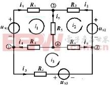 导读:看到一个电路图,小伙伴们会不会头大呢?本文就告诉你如何分析电路,电路分析基础主要有三种方法:支路分析法、节点电压法、网孔电流法,接下来就分别来瞧瞧吧~~ 一、电路分析基础- -支路分析法支路分析法是以支路电流或电压作为变量的电路方程法,在此以支路电流法为例来讲解,支路电压法与支路电流法类似,在此不再赘述。 支路电流法的一般步骤: 1)在电路图上为每个支路设定电流/电压参考方向; 2)用KCL对独立节点建立节点方程[(n-1)个]; 3)用KVL对独立回路建立回路方程[b-(n-1)个]; 4)用元件方程把回路方程中的变量u用变量i表示,得到以i为变量的回路方程[b-(n-1)个]; 5)最终得到b个以支路电流i为变量的方程。 例: ![]() 1)为每个支路设定电流/电压参考方向,如图所示; 2)列写独立节点方程:节点a:ius-i1-i4=0; 节点b:i1-i2-i3=0; 节点c:i2+i5-ius=0; 3)独立回路方程:回路abda:u1+u3-u4=0; 回路bcdb:u2-u5-u3=0; 回路adca:u4+u5-us=0; (11个变量6个方程) 4)回路方程变量用i表示:回路abda:R1i1+R3i3-R4i4=0; 回路bcdb:R2i2-R5i5-R3i3=0; 回路adca:R4i4+R5i5-us=0; (6个电流变量6个电流变量方程)。 二、电路分析基础- -节点电压法节点电压法的一般步骤: 1)选定参考节点,标定n-1个独立节点; 2)对n-1个独立节点,以节点电压为未知量,列写其KCL方程; 3)求解上述方程,得到n-1个节点电压; 4)求各支路电流(用节点电压表示); 5)其他分析。 例: ![]() 1)3个独立节点如上图所示; 列写KCL方程:节点1:U1=Us; 节点2:-G1U1+(G1+G3+G4)U2-G3U3=0; 节点3:-G2U1-G3U2+(G2+G3+G5)U3=0; 3)已知G1、G2、G3、G4、G5、Us条件下可求得U1、U2、U3的具体数值,进而可求出各支路电流。 三、电路分析基础- -网孔电流法网孔电流法的一般步骤为: 1)选定m=b-(n-1)个网孔,确定其绕行方向; 2)对m个网孔,以网孔电流为变量,列写其KVL方程; 3)求解上述方程,得到m个网孔电流; 4)求各支路电流(用网孔电流表示); 5)求解其他参数。 例: ![]() 1)网孔及其绕行方法如图所示; 2)列写KVL方程:网孔1:R1i1+R5i1+R5i2+R4i1-R4i3+us4-us1=0; 网孔2:R2i2+R5i2+R5i1+R6i2+R6i3-us2=0; 网孔3:R3i3+R4i3-R4i1+R6i3+R6i2-us4-us3 3)在各电阻及电压源已知条件下,可求得3个网孔电流,进而可以求得各支路电流。 四、电路分析基础- -比较支路法、节点法和网孔法的比较: 1)方程数的比较: 支路法有n-1个KCL方程,b-(n-1)个KVL方程,共计有b个方程; 节点法有n-1个KCL方程,无KVL方程,共计n-1个方程; 网孔法无KCL方程,有b-(n-1)个KVL方程,共计b-(n-1)个方程; 2)可根据电路含有电压源或电流源选择分析方法; 3)网孔法节点法易于编程。目前用计算机分析网络(电网,集成电路设计等)采用节点法较多。 ![]() 电路分析基础关键词:方程,节点,支路,电流,回路