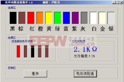 导读:常见的圆柱形电阻器上都有颜色各异的彩色环,它们主要用于识别电阻阻值,以方便维修者检测、更换。维修者到底是怎么根据彩色环来识别电阻阻值的呢,本文将对此给出详细介绍。 一、色环电阻识别方法- -识记色环表示关于各种颜色色环的表示内容如下图所示,这是色环电阻识别的基础,只有在识记色环表示的基础上才能在需要时快速、准确的对电阻进行识别。 ![]() 二、色环电阻识别方法- -判定识别顺序1、找到表示误差的金色色环或银色色环:金、银、棕三个颜色的色环常用于表示误差位于色环的最后一环,其中金色色环和银色色环基本不用做电阻的第一色环,因此只要找到表示误差的金色色环和银色色环,就可以判定这是电阻色环的最后一环,达到判定色环顺序的目的。 2、找到棕色色环:上面我们提到棕色色环可用于表示误差位于最后一环,但其也可以表示有效数字同时位于第一环和最后一环,因此当含有棕色色环时我们要另辟途径,根据色环之间的间隔来判定色环顺序。以五色环电阻为例,当出现棕色色环时,可根据四五环间隔大于一二环间隔来判定色环识别顺序。 3、根据电阻的生产序列值:当根据以上两条都无法判定色环识别顺序时,可依据电阻的生产序列值。以棕、黑、黑、黄、棕五色环为例,其值为100×10000=1MΩ,误差为1%,若反过来读取的话,为棕、黄、黑、黑、棕,其值为140×1Ω=140Ω,误差同样为1%,明显后一种电阻是不存在的,因此可判定识别顺序是棕、黑、黑、黄、棕。 ![]() 三、色环电阻识别方法- -明确色环结构电阻中的色环实质上分为两部分,第一部分位于电阻的前端,用于表示阻值,而第二部分位于电阻的后端,经常仅为一条色环,用于表示公差精度。第一部分各色环之间等间隔,方便与第二部分区分,这也是以上所提到的一种识别色环顺序的办法。 ![]() 四、色环电阻识别方法- -获取识别经验1、三色环电阻 第一条色环表示十位数,第二条色环表示个位数,第三条色环表示倍率,用三条色环来表示电阻的阻值。如:橙、白、黑表示39Ω;橙、白、橙表示39KΩ;橙、白、蓝表示39MΩ。 2、四色环电阻 第一条色环表示十位数,第二条色环表示个位数,第三条色环表示倍率,用三条色环来表示电阻的阻值(前三条色环表示同三色环电阻),第四条色环表示误差。如:棕、红、红、金表示1200Ω,误差为±5%。 3、五色环电阻 第一条色环表示百位数,第二条色环表示十位数,第三条色环表示个位数,第四条色环表示倍率,第五条色环表示误差。如:红、红、黑、棕、金表示2200Ω,误差为±5%。 4、六色环电阻 第一条色环表示百位数,第二条色环表示十位数,第三条色环表示个位数,第四条色环表示倍率,第五条色环表示误差(前五条色环表示同五色环电阻),第六条色环表示电阻的温度系数。 5、特殊电阻 若五色环电阻的第五条色环为黑色,则表示其为绕线电阻器;若第五条色环为白色,则表示其为保险丝电阻器;若电阻只有一条黑色色环,则表示其为零欧姆电阻。 ![]() 色环电阻识别方法关键词:电阻,识别,误差,判定,阻值