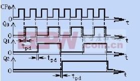 导读:在数字系统中使用最多的时序电路是计数器。计数器不仅能用于对时钟脉冲进行计数还可以用于分频、定时,产生节拍脉冲和脉冲序列以及进行数字运算等。下面就让小编为大家介绍一下计数器原理。 1.计数器原理—简介计数器是一种能够记录脉冲数目的装置,是数字电路中最常用的逻辑部件。计数器在数字系统中主要是对脉冲的个数进行计数,以实现测量、计数和控制的功能,同时兼有分频功能。计数器由基本的计数单元和一些控制门所组成,计数单元则由一系列具有存储信息功能的各类触发器构成。计数器在数字系统中应用广泛,如在电子计算机的控制器中对指令地址进行计数。 ![]() 计数器按进位制不同,分为二进制计数器和十进制计数器;按运算功能不同,分为加法计数器、减法计数器和可逆计数器。下面我们以T触发器构成二进制加法、减法计数器为例介绍计数器的原理。 2.计数器原理—加法计数器用T触发器构成二进制加法计数器,如下图所示。 ![]() 3位二进制加法器 如上图所示,是由3个下降沿触发的T触发器组成的3位二进制异步加法器,图中各个触发器的J、K输入端的输入信号均为1,主要由脉冲信号控制其输出信号,计数器从Q2 Q1 Q0 =000状态开始计数。 Q0、Q1、Q2的工作波形,如下图所示,即在计数输入脉冲CP的下降的触发下,触发器FF0的输出Q0要翻转。0变为1或1变为0。由于CP1取自Q0,所以在Q0的下降沿触发下,FF1的输出Q1要翻转。同理,由于CP2=Q1,所以在Q1的下降沿触发下,FF2的输出Q2要翻转。 ![]() 若用上升沿触发的T′触发器同样可以组成异步二进制加法计数器,但每一级触发器的进位脉冲应改为Qˉ端输出。原因很简单,当低位触发器输出端Q端由1变为0时,Qˉ端的上升沿正好可以作为高位的触发脉冲。 3.计数器原理—减法计数器如果将T′触发器之间按二进制减法规则连接,就可以得到二进制减法计数器。根据二进制减法计数规则。若低位触发器已经为0,则再输入一个减法计数脉冲后应翻转为1,同时向高位发出借位信号,使高位翻转。 ![]() 3位二进制减法器 上图就是按上述规则接成的3位二进制减法计数器。图中采用上升动作的D触发器接成的T′触发器,其中所有D触发器的D= Qˉ即成为T′触发器。它的时序图如下图所示。 ![]() 计数器原理介绍完了,下面为大家推荐几篇计数器的相关文章,有兴趣的来看一下吧~~~~ 1.同步计数器 2.异步计数器 3.计数器在数字电路中的应用 计数器,触发器,减法,脉冲,计数