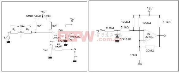 电特性(除非特别说明,VCC=5.0V, Tamb=25℃) LM339中文资料——使用注意LM339是高增益,宽频带器件,像大多数比较器一样,如果输出端到输入端有寄生电容而产生耦合,则很容易产生振荡.这种现象仅仅出现在当比较器改变状态时,输出电压过渡的间隙.电源加旁路滤波并不能解决这个问题,标准PC板的设计对减小输入—输出寄生电容耦合是有助的.减小输入电阻至小于10K将减小反馈信号,而且增加甚至很小的正反馈量(滞回1.0~10mV)能导致快速转换,使得不可能产生由于寄生电容引起的振荡.除非利用滞后,否则直接插入IC并在引脚上加上电阻将引起输入—输出在很短的转换周期内振荡,如果输入信号是脉冲波形,并且上升和下降时间相当快,则滞回将不需要. 比较器的所有没有用的引脚必须接地. LM393/339偏置网络确立了其静态电流与电源电压范围 2.0~30V无关. 通常电源不需要加旁路电容。 差分输入电压可以大于Vcc并不损坏器件.保护部分必须能阻止输入电压向负端超过-0.3V. LM393/339的输出部分是集电极开路,发射极接地的 NPN输出晶体管,可以用多集电极输出提供或 OR ing 功能.输出负载电阻能衔接在可允许电源电压范围内的任何电源电压上,不受 Vcc端电压值的限制.此输出能作为一个简单的对地SPS开路(当不用负载电阻没被运用),输出部分的陷电流被可能得到的驱动和器件的β值所限制.当达到极限电流(16mA)时,输出晶体管将退出而且输出电压将很快上升.输出饱和电压被输出晶体管大约60ohm 的γSAT限制。当负载电流很小时,输出晶体管的低失调电压(约1.0mV)允许输出箝位在零电平。 LM339中文资料——应用电路