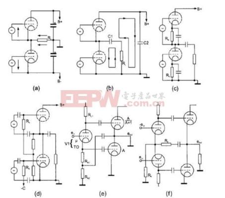 导读:功放在生活中也是很常见的一类设备,本文主要介绍功放的原理图及解析,有需要的盆友们快来看一看吧。 1.功放原理图--简介功放是功率放大器的简称,俗称“扩音机”,它的作用就是把来自音源或前级放大器的弱信号放大,推动音箱放声。一套良好的音响系统功放的作用功不可没。功放是音响系统中最基本的设备,它的任务是把来自信号源的微弱电信号进行放大以驱动扬声器发出声音。由于考虑功率、阻抗、失真、动态以及不同的使用范围和控制调节功能,不同的功放在内部的信号处理、线路设计和生产工艺上也各不相同。 在音响领域里人们一直坚守着A类功放的阵地,认为A类功放声音最为清新透明,具有很高的保真度,其实不是这样的,效率极高的是D类功放,因其符合绿色革命的潮流正受着各方面的重视。下面我们来讲解一下D类功放和OTL功放的原理图。 ![]() 2.功放原理图--D类功放D类功放实际上只具有开关功能,早期仅用于继电器和电机等执行元件的开关控制电路中。然而,开关功能随着数字音频技术研究的不断深入,用与Hi-Fi音频放大的道路却日益畅通。下图是D类功放的基本结构,可分为三个部分: ![]() 第一部分为调制器,最简单的只需用一只运放构成比较器即可完成。 第二部分就是D类功放,这是一个脉冲控制的大电流开关放大器,把比较器输出的PWM信号变成高电压、大电流的大功率PWM信号。 第三部分需把大功率PWM波形中的声音信息还原出来。方法很简单,只需要用使用一个LC低通滤波器。当占空比大于1:1的脉冲到来时,C的充电时间大于放电时间,输出电平上升;窄脉冲到来时,放电时间长,输出电平下降,正好与原音频信号的幅度变化相一致,如下图所示: ![]() 3.功放原理图--OTL功放OTL是英文Output Transformer Less Amplifier的简称,是一种无输出变压器的功率放大器。普通电子管功率放大器的输出负载为动圈式扬声器,其阻抗非常低,必须采用输出变压器来进行阻抗变换。下面图(a)~图(f)是OTL无输出功放基本电路。 ![]() 图(a)和图(b)为OTL功放两种供电结构的方式,即正负双电源式和单电源供电方式。在正负双电源式OTL功放中,中心为地电位。这样可保证推挽电路的对称性,因此可以省略输出电容,使功放的频率响应特性更佳。 图(c)和图(d)为OTL功放电子管栅极偏置的取法。由于上边管阴极不接地,因此上边管的推动信号由栅极与阴极之间加入,而下边管的推动信号可由栅极与地之间加入。 图(e)和图(f)为OTL倒相电路的应用。图(e)为采用屏阴分割式倒相电路对OTL功放进行激励。图(f)为采用共阴极差分式倒相电路。由于共阴极电阻RK,的阻值较大,具有深度负反馈作用,故电路稳定可靠。 关键词:功放,输出,栅极,阴极,电路