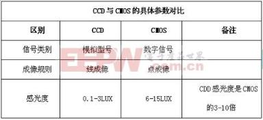 CMOS(CompementaryMetalOxideSemiconductor)指互补金属氧化物半导体,是电压控制的一种放大器件,是组成CMOS数字集成电路的基本单元。在数字影像领域,CMOS作为一种低成本的感光元件技术被发展出来,市面上常见的数码产品,其感光元件主要就是CCD或者CMOS,尤其是低端摄像头产品,而通常高端摄像头都是CCD感光元件。 CMOS制造工艺被应用于制作数码影像器材的感光元件,是将纯粹逻辑运算的功能转变成接收外界光线后转化为电能,再造过芯片上的模一数转换器(ADC)将获得的影像讯号转变为数字信号输出。CMOS与CCD主要有以下不同: (1)成像过程中产生的噪声高 (2)集成性高 (3)读出速度快,地址选通开关可随机采样,获得更高的速度 (4)噪声:由于CMOS图像传感器集成度高,各元件、电路之间距离很近,干扰比较严重,噪声对图像质量影响很大。随着CMOS电路消噪技术的不断发展,为生产高密度优质的CMOS图像传感器提供了良好的条件。 cmos和ccd的区别——技术角度比较