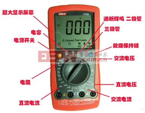 导读:万用表,顾名思义,有近“万”种用法的仪器,常用于电流、电压、电阻值的测量,有指针式万用表和数字万用表两种。今天小编就来为大家详细讲解一下万用表测电压的方法及其注意事项~~ 一、万用表测电压- -直流电压测试方法(1)将红表笔插入V/Ω插孔,将黑表笔插入COM插孔; (2)将功能开关置于直流电压档V-处,将测试表笔置于待测器件两端。(对于指针式万用表而言,红表笔要接电路正极,黑表笔接电路负极,若电路正负极不清楚,可以在最大量程情况下,在被测电路上试一下,根据笔针偏转的方向判断正负极;而对于数字万用表来说,不存在这种情况,红黑表笔可以任意接在待测器件两端,假设红表笔端为正极,若假设错误,则万用表显示读数为负值。) (3)查看万用表显示读数,确认量程,并确定电压方向。 ![]() 二、万用表测电压- -交流电压测试方法(1)将红表笔插入V/Ω插孔,将黑表笔插入COM插孔; (2)将功能开关置于交流电压档V~处,将测试表笔置于待测器件两端(交流电压没有方向); (3)查看万用表显示读数,确认量程。 ![]() 三、万用表测电压- -注意事项(1)在万用表使用之前,应先进行机械调零; (2)万用表应水平放置,以减小外界磁场对其的影响; (3)如果被测电压范围处于未知状态,则应先将功能开关置于最大量程并逐步降低; (4)若在测量过程中发现量程不符,则应在断开表笔后进行量程的变更,不能在测量过程中进行换挡; (5)如果万用表显示器只显示“1”,则表示量程过小,应将功能开关置于更大的量程上; (6)当测试高电压时,应格外注意避免触电; (7)在万用表使用过程中,不能用手触碰表笔的金属部分,以保证人身安全和测量结果的准确; (8)万用表使用完毕后,应将功能开关置于交流电压的最大量程处,若长时间不适用,应取出其内部电池,以免腐蚀表内其它器件。 ![]() 下面是小编为大家推荐的几篇文章,相信它们会帮助你更熟练地使用万用表哟~~ 万用表,电压,量程,表笔,置于