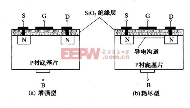 一、场效应管的工作原理- -概念场效应管(FET)是场效应晶体管(field-effect transistor)的简称,由于它仅靠半导体中的多数载流子导电,也称为单极性场效应管,是一种常见的利用输入回路的电场效应来控制输出回路电流的一种电压控制性半导体器件,场效应管不但具有双极性晶体管体积小、重量轻、寿命长等优点,而且输入回路的内阻高达107~1012Ω,噪声低,热稳定性好,抗辐射能力强,且比后者耗电省,这些优点使之从20世纪60年代诞生起就广泛地应用于各种电子电路之中。 ![]() 二、场效应管的工作原理- -结构所有的FET都有栅极g(gate)、漏极d(drain)、源极s(source)三个极,分别对应双极性晶体管的基极b(base)、集电极c(collector)和发射极e(emitter)。除了结型场效应管外,所有的FET也有第四端,被称为体(body)、基(base)、块体(bulk)或衬底(substrate)。P区与N区交界面形成耗尽层,而漏极d与源极s间的非耗尽层区域称为导电沟道。 三、场效应管的工作原理- -分类场效应管可以分为结型场效应管(JFET)和绝缘栅型场效应管(JGFET),结型场效应管(JFET)因有两个PN结而得名,绝缘栅型场效应管(JGFET)则因栅极与其它电极完全绝缘而得名。因为绝缘栅型场效应管的栅极为金属铝,故又称为MOS管。 场效应管按导电方式的不同来划分,可分成耗尽型与增强型。当栅压为零时有较大漏极电流的称为耗尽型;当栅压为零,漏极电流也为零,必须再加一定的栅压之后才有漏极电流的称为增强型。 无论是结型场效应管还是绝缘栅型场效应管,无论是耗尽型场效应管或是增强型场效应管,都可分为N沟道和P沟道,其结构分别如下图所示: ![]() 四、场效应管工作原理- - 结型结型场效应管可分为N沟道结型场效应管和P沟道结型场效应管,下面我们就以N沟道为例对结型场效应管工作原理进行说明。 为保证N沟道结型场效应管能正常工作,应在其栅-源之间加负向电压(即uGS<0),以保证耗尽层承受反向电压;在漏-源之间加正向电压uDS,以形成漏极电流。栅-源之间负向电压越大,PN结交界面所形成的耗尽区就越厚,导电沟道越窄,沟道电阻变大,漏极电流iD越小;相反,若栅-源之间负向电压越小,则耗尽区就越薄,导电沟道越宽,沟道电阻变小,漏极电流iD越大。因此实现了场效应管的栅-源间负向电压对沟道电流的控制。 而对于P沟道结型场效应管,与N沟道原理类似,但要在其栅-源之间加正向电压(即uGS>0)才能保证其能能正常工作。 五、场效应管工作原理- - 绝缘栅型以N沟道耗尽型MOS管为例,如果在制造MOS管时,在SiO2绝缘层中掺入大量正离子,那么即使uGS=0,在正离子作用下P型衬底表层也存在反型层,即漏-源之间存在导电沟道。只要在漏-源间加正向电压,就会产生漏极电流,并且,uGS为正时,反型层变宽,沟道电阻变小,沟道电流iD增大;反之,uGS为负时,反型层变窄,沟道电阻变大,iD减小。而当uGS从零减小到一定值时,反型层消失,漏-源之间导电沟道消失,iD=0。实现了栅源电压对漏极电流的控制。 ![]() 六、场效应管工作原理- - 增强型以N沟道为例,在一个N沟道增强模式器件中,应在栅源间加正向电压。正电压吸引了体中的自由移动的电子向栅极运动,形成了导电沟道。但是首先,充足的电子需要被吸引到栅极的附近区域去对抗加在FET中的掺杂离子;这形成了一个没有运动载流子的被称为耗尽区的区域,这种现象被称为FET的阈值电压。更高的栅源电压将会吸引更多的电子通过栅极,则会制造一个从源极到漏极的导电沟道;这个过程叫做"反型"。 七、场效应管工作原理- - 耗尽型在一个N沟道耗尽模式器件中,在栅源之间加负向电压将会造成一个耗尽区去拓展宽度,从边界侵入沟道,从而使沟道变窄。若耗尽区扩展至完全关闭沟道,则漏源间沟道电阻会变得很大,FET就会像开关一样有效的关闭。类似的,在一个P沟道耗尽模式期器件中,在栅源之间加正向电压将使沟道变宽,沟道电阻变小,使电流更易通过。 ![]() 场效应管多种多样,但万变不离其中,感兴趣的童鞋还可以参考以下文章~~ 1、场效应管工作原理 2、mos场效应管工作原理 3、场效应晶体管放大器 4、MOS管工作原理,就是这么简单 5、CMOS场效应晶体管的发展趋势 沟道,场效应管,耗尽,电压,电流