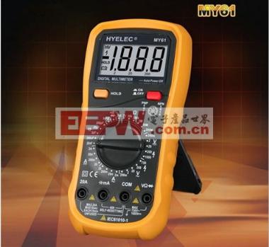 一. 数字万用表的使用方法图--什么是数字万用表数字万用表是一种多用途电子测量仪器,针对需要多功能、高分辨率、高精度和自动化测量的用户而设计的产品。它们在具有准和稳的同时,集高速数据采集、自动化测量、任意传感器等多种功能于一身。 ![]() 二. 数字万用表的使用方法图--电阻的测量第一步:首先红表笔插入VΩ孔黑表笔插入COM孔 第二步:把旋转开关旋转到电阻的位置。 第三步:万用表的读数就是该电阻的阻值。 注意:量程的选择和转换。量程选小了显示屏上会显示“1.”此时应换用较之大的量程;反之,量程选大了的话,显示屏上会显示一个接近于“0”的数,此时应换用较之小的量程。 ![]() 三. 数字万用表的使用方法图--直流电压的测量第一步:正确插入表笔,首先红表笔插入VΩ孔黑表笔插入COM孔 第二步:把万用表的旋转开关旋转到直流电压的位置。 第三步:用表笔的另一端和电池的正负极相对应。 第四步:读出显示器上的数据。 ![]() 注意:把旋钮选到比估计值大的量程档,接着把表笔接电源或电池两端;保持接触稳定,数值可以直接从显示屏上读取。 四. 数字万用表的使用方法图--交流电压的测量第一步:红表笔插入VΩ孔,黑表笔插入COM孔。 第二步:量程旋钮打到V~适当位置。 第三步:将红黑表笔按如图方式插入到插座的孔内。 第四步:读出显示屏上显示的数据。 ![]() 注意:测试市电时一定要把档位打到750V位置,测量档位一定要比要测试量的电压高,如不了解要测量的电压是多少伏,先用大的档位量,如量的值太小,再慢慢往小档位换。 五. 数字万用表的使用方法图--直流电流的测量第一步:断开电路。 第二步:黑表笔插入com端口,红表笔插入mA端口。 第三步:功能旋转开关打至A-(直流),并选择合适的量程。 第四步:断开被测线路,将数字万用表串联入被测线路中。 第五步:接通电路。 第六步:读出显示屏上的数据。 ![]() 注意:估计电路中电流的大小。若测量大于200mA的电流,则要将红表笔插入“20A”插孔并将旋钮打到直流“20A”档;若测量小于200mA的电流,则将红表笔插入“200mA”插孔,将旋钮打到直流200mA以内的合适量程。 六. 数字万用表的使用方法图--交流电流的测量测量步骤与直流电流的测量步骤一样,只是将功能旋转开关打到A~(交流)。注意事项与直流电流的测量也一样。 七. 数字万用表的使用方法图--电容的测量第一步:将电容两端短接,对电容进行放电,确保数字万用表的安全。 第二步:将功能旋转开关打至电容“F”测量档,并选择合适的量程。 第三步:将电容插入万用表CX插孔。 第四步:读出显示屏上的数据。 ![]() 注意:测量前电容需要放电,否则容易损坏万用表,测量后也要放电,避免埋下安全隐患 八. 数字万用表的使用方法图--二极管的测量第一步:红表笔插入VΩ孔黑表笔插入COM孔 第二步:转盘打在二极管档 第三步:判断正负 第四步:红表笔接二极管正黑表笔接二极管负 第五步:读出显示屏上的数据 第六步:两表笔换位,若显示屏上为 “1” ,正常;否则此管被击穿 ![]() 注意:二极管正负好坏判断。红表笔插入VΩ孔黑表笔插入COM孔转盘打在二极管档然后颠倒表笔再测一次。 九. 数字万用表的使用方法图--三极管的测量步骤一:红表笔插入VΩ孔黑表笔插入COM孔 步骤二:转盘打在二极管档 步骤三:找出三极管的基极b 步骤四:判断三极管的类型(PNP 或NPN) 步骤五:转盘打在hFE档 步骤六:根据类型插入PNP或NPN插孔测β 步骤七:读出显示屏中β值 ![]() 注意:e、b、c管脚的判定:表笔插位同上;其原理同二极管。先假定A脚为基极,用黑表笔与该脚相接,红表笔与其他两脚分别接触其他两脚;若两次读数均为0.7V左右,然后再用红笔接A脚,黑笔接触其他两脚,若均显示“1”,则A脚为基极,否则需要重新测量,且此管为PNP管。 十. 数字万用表的使用方法--参考资料1.VC930F+数字万用表使用说明书 2. VC9805A、VC9808数字万用表使用说明书 3. 初步认识指针式万用表 测量,插入,表笔,量程,数字万用表