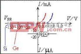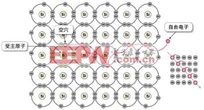 导读:本文主要介绍半导体二极管及基本电路,这是学好模拟电路的关键所在,希望这些对亲们有所帮助哦!!!! 一. 模拟电路基础--半导体的基本知识根据物体导电能力(电阻率)的不同,划分为导体、绝缘体和半导体。典型的半导体有硅Si和锗Ge以及砷化镓GaAs等。 ![]() 半导体的共价键结构 硅和锗是四价元素,在原子最外层轨道上的四个电子称为价电子。它们分别与周围的四个原子的价电子形成共价键。原子按一定规律整齐排列,形成晶体点阵后,结构图为: ![]() 本征半导体、空穴及其导电作用 本征半导体----完全纯净的、结构完整的半导体晶体。 当T=0K和无外界激发时,导体中没有载流子,不导电。当温度升高或受到光的照射时,价电子能量越高,有的价电子可以挣脱原子核的束缚,而参与导电,成为自由电子,这个过程就叫做本征激发。 ![]() 自由电子产生的同时,在其原来的共价键中就出现了一个空位,这个空位为空穴。因热激发而出现的自由电子和空穴是同时成对出现的,称为电子空穴对。 N型半导体(电子型半导体) 在本征半导体中掺入五价的元素(磷、砷、锑) ![]() P型半导体(空穴型半导体) 在本征半导体中掺入三价的元素(硼) ![]() 二. 模拟电路基础--PN结的形成及特性PN结的形成 在一块本征半导体两侧通过扩散不同的杂质,分别形成N型半导体和P型半导体。PN结的形成过程为 ![]() PN结的单向导电性 PN结的单向导电性就是指PN结正向电阻小,反向电阻大。 (1)PN结加正向电压 外加的正向电压,方向与PN结内电场方向相反,削弱了内电场。于是,内电场对多子扩散运动的阻碍减弱,扩散电流加大。扩散电流远大于漂移电流,可忽略漂移电流的影响,PN结呈现低阻型。 (2)PN结加反向电压 外加的反向电压,方向与PN结内电场方向相同,加强了内电场。于是,内电场对多子扩散运动的阻碍增强,扩散电流大大减小。此时漂移电流大于扩散电流,可忽略扩散电流,PN结呈现高阻型。 三. 模拟电路基础--半导体二极管二极管:一个PN结就是一个二极管。 电路符号: ![]() 半导体二极管的伏安特性曲线 (1)正向特性曲线 ![]() 正向区分为两段: 当0 当V>Vth时,开始出现正向电流,并按指数规律增长。 (2)反向特性曲线 ![]() 反向区也有两个区域: 当VBR 当V>VBR时,反向电流急剧增加,VBR称为反向击穿电压。 (3)反向击穿特性 硅二极管的反向击穿特性比较硬、比较陡、反向饱和电流也很小;锗二极管的反向击穿特性比较软,过渡比较圆滑,反向饱和电流较大。 ![]() 若|VBR|>7Vs时,主要是雪崩击穿;若|VBR|<4V时,则主要是齐纳击穿。 四. 模拟电路基础--二极管基本电路分析1.理想模型 正向偏置时:管压降为0,电阻也为0. 反向偏置时:电流为0,电阻为无穷大。 2.恒压降模型 当ID>1mA时,VD=0.7V。 3.折线模型(实际模型) ![]() 以上就是小编为大家介绍的模拟电路的基础知识了,如果您想深入学习模拟电路的知识的话,请您参考一下几篇文章 1.二极管工作原理 2.场效应管工作原理- -场效应管工作原理也疯狂 3. 模拟集成电路走上复苏路 半导体,电流,电路,电场,扩散