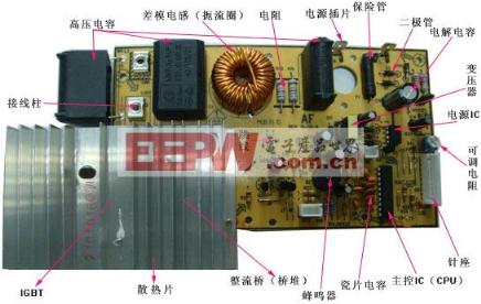 导读:“吃着火锅唱着歌”,这就是冬天。电磁炉是家里吃火锅的必备电器,相信大家都会用。今天小编客串家电维修工程师,来给大家讲解电磁的工作原理。了解电磁炉加热原理还是很有好处的,一来会增加一些安全常识;二来万一突然“熄火”了,小问题咱男爷们直接就处理了,还获得媳妇儿的膜拜,何乐而不为呢? ![]() 电磁炉工作原理—家家有台电磁炉电磁炉是利用电磁感应原理制成的,这种加热方式能减少热量传递的中间环节,可大大提升制热效率,比传统炉具(电炉、气炉)节省能源一半以上。电磁炉一般分为工频(低频)和高频两种。工频电磁炉工作简单可靠,但躁声大,热效率低,我们通常所说的电磁炉指高频电磁炉。电磁炉由于具有热效率高、使用方便、无烟熏、无煤气污染、安全卫生等优点,非常适合现代家庭使用。 通常情况下,电磁炉的锅一般是用钢质、铁质材料制成的,铝、铜由于表面电阻率太小,而不易被加热,陶瓷、木等又由于表面电阻率太大,使产生电流太小,所以也不易被加热。所以买锅请买钢、铁锅! ![]() 电磁炉工作原理--主要结构根据功能,电磁炉一般包括5大部分: 1.加热部分:电磁炉的锅体下面有搁板,下面有励磁线圈。通过电磁感应产生涡电流对锅体进行加热。 2.控制部分:主要有电源开关,温度调节钮,功率选择钮等。由内部的控制电路来掌控。 3.冷却部分:采用风冷的方式。炉身的侧面分布有进风口和出风口,内部设有风扇。 4.电气部分:由整流电路、逆变电路、控制回路、继电器、电风扇等组成。 5.烹饪部分:主要包括各种炊具,供用户使用。 电磁炉的的内部结构如下面两幅图所示,大致包括如下部件: 1、陶瓷板:又叫微晶玻璃板,位于电磁炉顶部,用于锅具的垫放,具有足够机械强度,耐酸碱腐蚀,耐高低温冲击。 2、上盖:用耐温塑料制成,作为电器的外保护壳。 3、面膜:用塑料薄膜制成,用于功能显示及按键操作指示。 4、灯板:又叫显示控制板,位于壳内,进行功能显示及功能按键操作。 5、炉面传感器组件:位于壳内,嵌在发热盘的中间,用橡胶头或其它方式顶住陶瓷板,用于控制炉面锅具的温度。 6、加热线盘:位于壳内,主工作器件,发射磁力线,自身也会发热。 7、主控板:又叫电源板、主板,位于壳内,作为电转换的控制的主工作部分。 8、电源线及线卡:连接市电与电磁炉,提供电源通道。 9、电风扇:位于壳内,通过吸风将炉内热量带出壳外,起降温作用。 10、下盖: 用耐温塑料制成,作为电器的下保护壳,及支撑内部器件及锅具作用。 ![]() ![]() 电磁炉工作原理--分类按样式分类,可以分以下三种: 台式电磁炉:分为单头和双头两种,具有摆放方便、可移动性强等优点。因为价格低较受欢迎。 埋入式电磁炉:是将整个电磁炉放入橱柜面内,然后在台面上挖个洞,使灶面与橱柜台面成一个平面。业内专家认为这种安装方法只求美观,但不科学,很大一部分消费群体把电磁炉当做火锅,埋入式炒菜并不方便。 嵌入式电磁炉:可适应不同锅具的需要,不再对锅具有特殊要求。 电磁炉工作原理--加热原理电磁炉是利用电磁感应原理制成的,如图1所示,在励磁线圈中通以交流电,产生交变磁场。由于电磁感应效应,在铁或不锈钢制成的金属锅中会产生涡电流,电流的焦耳热就可以对食物进行加热和烹饪。这种最新的加热方式,能减少热量传递的中间环节,可大大提升制热效率,比传统炉具(电炉、气炉)节省能源一半以上。 ![]() 图1 电磁炉原理示意图 其工作过程如下:电流电压经过整流器转换为直流电,又经高频电力转换装置使直流电变为超过音频的高频交流电,将高频交流电加在扁平空心螺旋状的感应加热线圈上,由此产生高频交变磁场。其磁力线穿透灶台的陶瓷台板而作用于金属锅。在烹饪锅体内因电磁感应就有强大的涡流产生。涡流克服锅体的内阻流动时完成电能向热能的转换,所产生的焦耳热就是烹调的热源。 ![]() 图2. 电磁炉工作原理图 电磁炉工作原理--常见故障分析“葵花宝典”电路维修一般是从源头开始检查,在讲解常见故障之前,需要先明确一般的电路故障检修流程: 1、上电无任何反映 2、上电显示正常,有检锅信号,放上锅具检到锅不工作。 3、显示正常、开机只有检锅声,不工作。 4、显示正常,开机后“无锅报警声正常”放上锅具后,能工作,但功率 出现间隙加热,由小变大,反复跳变 5、正常显示,开机后功率上不来 6、风扇不转 7、一上电就炸保险管,IGBT、整流桥。 8、无显示、按键无反应 9、功率偏低,与额定功率偏差过大,或功率跳功频繁。 进入正题,电磁炉一般有三种常见故障: 1、爆机—烧保险和IGBT。 具体表现是通电没反应,整机不工作。我们拆开机子,会发现保险烧爆了,而且爆得很厉害,保险的玻璃壁上都给爆黑了。我们进一步检查,会发现在那个大散热器下面的IGBT也击穿了,有时连带把整流桥也烧了,不过整流桥比IGBT结实多了,一般情况下,只烧IGBT。 遇到这种情况,我们不要急于更换零件试机。还要查一查有没有其它的坏件。我遇到这种情况,就把电路中所有大阻值大体型的电阻都测量一遍,还有驱动IGBT的那两个三极管(8050,8550)也要测量,再看一看300V滤波电容和0.33uF谐振电容有没有鼓包。如果这些都没问题,就把除了IGBT之外的所有坏零件全部换新。此时通电试机,测+5V、+15V或+18V、IGBT的B极0V是不是正常。只有这几个电压正常了,才能安