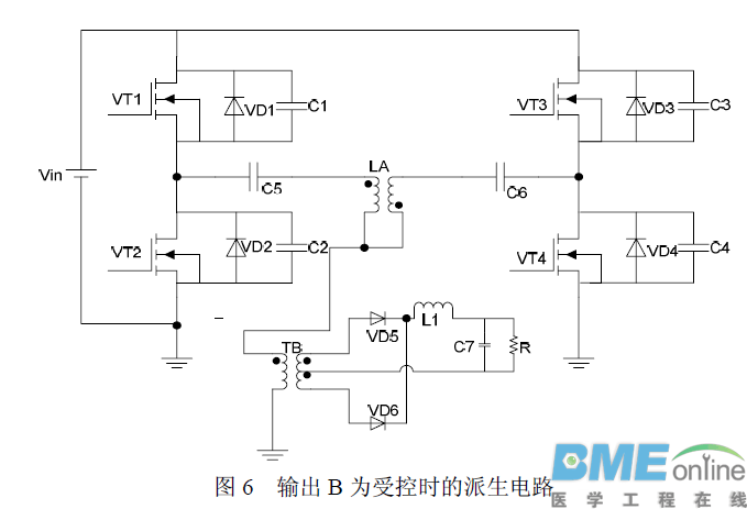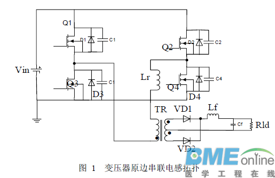 为了能使全桥变换电路能够工作在更大的负载范围。下面给出了一种新颖的变换器拓扑(如图4)