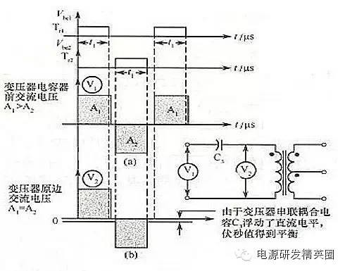 首先我们先来了解一下半桥电路的基本拓扑。 电容器C1和C2与开关管Q1、Q2组成桥,桥的对角线接变压器T1的原边绕组,故称半桥变换器。如果此时C1=C2,那么当某一开关管导通时,绕组上的电压只有电源电压的一半。 ![]() 半桥电路的基本拓扑电路图 半桥电路概念的引入及其工作原理 电路的工作过程大致如下: 参照半桥电路的基本拓扑电路图,其中Q1开通,Q2关断,此时变压器两端所加的电压为母线电压的一半,同时能量由原边向副边传递。 Q1关断,Q2关断,此时变压器副边两个绕组由于整流二极管两个管子同时续流而处于短路状态,原边绕组也相当于短路状态。 Q1关断,Q2开通。此时变压器两端所加的电压也基本上是母线电压的一半,同时能量由原边向副边传递。副边两个二极管完成换流。 半桥电路中应该注意的几点问题 偏磁问题 原因:由于两个电容连接点A的电位是随Q1、Q2导通情况而浮动的,所以能够自动的平衡每个晶体管开关的伏秒值,当浮动不满足要求时,假设Q1、Q2具有不同的开关特性,即在相同的基极脉冲宽度t=t1下,Q1关断较慢,Q2关断较快,则对B点的电压就会有影响,就会有有灰色面积中A1、A2的不平衡伏秒值,原因就是Q1关断延迟。 如果要这种不平衡的波形驱动变压器,将会发生偏磁现象,致使铁心饱和并产生过大的晶体管集电极电流,从而降低了变换器的效率,使晶体管失控,甚至烧毁。 ![]() 在变压器原边串联一个电容的工作波形图 解决办法:在变压器原边线圈中加一个串联电容C3,则与不平衡的伏秒值成正比的直流偏压将被次电容滤掉,这样在晶体管导通期间,就会平衡电压的伏秒值,达到消除偏磁的目的。 半桥电路的运行原理及注意问题 用作桥臂的两个电容选用问题: 从半桥电路结构上看,选用桥臂上的两个电容C1、C2时需要考虑电容的均压问题,尽量选用C1=C2的电容,那么当某一开关管导通时,绕组上的电压只有电源电压的一半,达到均压效果,一般情况下,还要在两个电容两端各并联一个电阻(原理图中的R1和R2)并且R1=R2进一步满足要求,此时在选择阻值和功率时需要注意降额。此时,电容C1、C2的作用就是用来自动平衡每个开关管的伏秒值,(与C3的区别:C3是滤去影响伏秒平衡的直流分量)。 直通问题: 所谓直通,就是Q1、Q2在某一时刻同时导通的现象,此时会构成短路。 解决措施: 可以对驱动脉冲宽度的最大值加以限制,使导通角度不会产生直通。 还可以从拓扑上解决问题,才用交叉耦合封闭电路,使一管子导通时,另一管子驱动在封闭状态,直到前一个管子关断,封闭才取消,后管才有导通的可能,这种自动封锁对存储时间、参数分布有自动适应的优点,而且对占空比可以满度使用的。 ![]() 副边为全波电路 ![]() 副边为全桥电路 两个电路的选择主要是考虑以下两点: 1、根据输出电压的高低,考虑管子的安全问题; 2、功率损耗的问题,主要是开关管和副边绕组的损耗问题; 半桥电路的驱动问题: 1、原边线圈过负载限制:要给原边的功率管提供独立的电流限制; 2、软启动:启动时,要限制脉宽,使得脉宽在启动的最初若干个周期中慢慢上升; 3、磁的控制:控制晶体管驱动脉冲宽度相等,要使正反磁通相等,不产生偏磁; 4、防止直通:要控制占空比上限缩小; 5、电压的控制和隔离:电路要闭环控制,隔离可以是光电隔离器、变压器或磁放大器等; 6、过压保护:通常是封闭变换器的开关脉冲以进行过压保护; 7、电流限制:电流限制安装在输入或输出回路上,在发生短路时候起作用; 8、输入电压过低保护:规定只有在发挥良好性能的足够高的电压下才能启动; 9、此外,还要有合适的辅助功能:如浪涌电流限制和输出滤波环节等。 半桥电路的驱动特点: 1、上下桥臂不共地,即原边电路的开关管不共地。 2、隔离驱动......