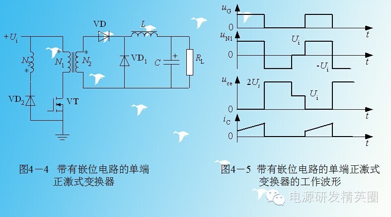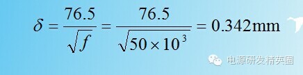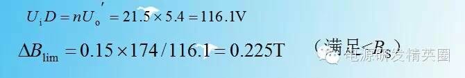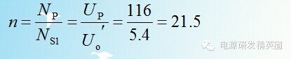 开关电源中的高频磁元件的设计 ......接上期 变压器设计基本步骤 举例说明设计步骤: 设计一个输出为5V,20A离线双管正激式变换器的高频变压器,变换器输入直流电压范围是Vdc=310±20%V,变压器传输效率为98%,转换效率为85%,允许温升40oC,开关频率50kHz。 第一步:确定变压器设计的电源参数: Ui范围: 246~370V;输出:5V,20A;输出功率100W;开关频率fS:50kHz;变压器最大损耗(绝对):2W;最大温升℃:40℃;冷却方式: 自然通风 第二步:确定占空比绝对限制Dlim,假定Uimin时Dmax(保证动态响应)和额定UiD: 绝对限制Dlim:0.47;额定Dmax: 0.42;额定UiD: UiminDmax=116V,UimaxDlim=174V; 第三步:计算输出电压加上满载时二极管正向压降和次级IR压降: ![]() 第四步:计算希望的匝比: ![]() 可能选择的匝比:22:1;21:1或43:2 第五步:计算AP值:根据频率和输出功率要求可选择EI型锰锌铁氧体磁芯。 ![]() 查表得,EI33的AP值为1.63cm4,满足要求。其Ae=1.23cm^2。 第六步:根据电磁感应定律计算次级匝数: ![]() 如果取5匝,将增加了伏/匝、磁感应变化量和磁芯损耗。如果取6匝,减少了磁芯损耗,但是增加了线圈损耗。因为以上的结果接近6匝,选取6匝。 第七步:确定初级匝数 匝比大,峰值电流低,占空比D大,铜损耗大。由步骤4决定的值,试算得到最好的选择是NP=129匝(变比43:2) 重新计算额定UiD和最坏情况下的UimaxDlim条件: ![]() 第八步:计算50kHz时的穿透深度 ![]() 第九步:根据式5-29可计算每个线圈的电流有效值: ![]() 第十步:确定初级线圈 ![]() 查表可选AWG#23号线,裸线截面为0.2588mm^2直径0.632mm<2δ。 第十一步:确定次级线圈 ![]() 查表可选32股AWG#25号线绞绕,单根裸线截面为0.1623mm^2,直径0.505mm<2δ,或选用厚度小于δ= 0.342mm的铜箔绕制。 单端正激式变换器的电路与波形 ![]() |