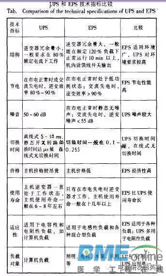 电源是不间断电源的简称,其主要作用是通过蓄电池与主机相连的方式来为计算机或一些电子设备提供稳定的,并且不间断的电源供应。EPS电源是紧急电力供给电源的简称,通常应用于应急和事故照明当中。很多人觉得UPS电源和EPS电源并没有什么区别,在用途上也可以时间互通,但实际上,这两种电源是存在一定区别的,本篇文章就将为大家从几个方面来详细阐述。输出上的区别UPS的供电对象是计算机及网络设备。负载性质差别不大,所以国标规定UPS输出功率因数为0.8。而EPS主要是作为电源应急保障,负载性质为感性、容性及整流性负载兼而有之。有些负载是市电停电后才投入工作的。因而要求EPS能提供很大的冲击电流,一般要求120%额定负载下仍能正常运行10rain以上,所以EPS需要输出动态特性要好,抗过载能力要强。UPs额定容量以视在功率(kv·A)为单位,EPS额定容量以有功功率(kW)为单位。在线式UPS为保证输出供电不间断和优质供电,选择逆变优先。而EPS电源为保证应急使用,是选择市电优先。功能上的区别这两者均有市电旁路及逆变电路,但EPS仅具有持续供电功能,一般对逆变切换时间要求不高,可有多路输出,有些EPS还配置蓄电池单体监测功能。EPS在市电正常时由旁路供电。在市电中断时才转为逆变供电,电能利用率高,而UPS一般强调其三大功能:稳压稳频;对切换时间要求极高的不问断供电;净化市电;在日常着重整流,逆变的双变换电路供电,在逆变器故障或过载时才转为旁路供电,电能利用率不高。UPS并不是仅在市电中断时才发挥作用。当市电出现电压过低、过高,线路出现浪涌等异常情况,UPS能输出高质量电源,确保用电设备正常运行。应用领域上的区别在我国EPS主要用于消防类负荷及一些对供电质量要求不太高,但需保证连续供电的用电设备。仅强调能持续供电这一功能。EPS用于消防负荷时,其产品技术受公安部消防认证。UPS一般用于计算机及数字信息系统等场合。要求供电质量较高的负载,主要强调逆变切换时间、输出电压、频率稳定性、输出波形的纯正、无各种干扰等。 技术指标上的区别 ![]() 图1 UPS和EPS在技术指标上的区别如图1所示。本篇文章从四个方面来阐述了UPS和EPS的区别,这四个方面的......