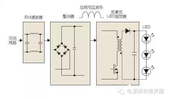 LED灯的驱动器电路将交流输入电源转换为低压直流电源,并维持一个稳定电流,驱动高亮度LED负载获得恒定光输出。要想通过基于双向晶闸管的调光器来调节基本的LED驱动器电路,就必须额外添加一些元器件来实现稳定的调光器运行,并根据调光器相位角来调节输出电流。 ![]() 单级LED驱动器示例电路(图2)取代了图1中代表白炽灯的电阻性负载。尽管这一电路由于在稳定运行时的高功率因数模拟了电阻性负载,但其前端也包括了EMI滤波所必需的电容器。 此外,LED灯泡所消耗的功率比同等白炽灯的25%还要少。结果就是,在TRIAC触发前,调光器在交流线路半周期中主要承受电容性负载。 ![]() 图1所示的双向触发电路若想要按照设计目标运行,还需要一条电阻性路径至中性点。如果改为电容性负载,这一电路将无法正常运行,并导致周期转换时出现不稳定触发的情况,具体表现为输出的光不停闪烁。调光器和LED驱动器中的EMI滤波器,还会由TRIAC启动时的高dv/dt引起振铃振荡。 根据上面的解释,我们可以了解到,当振荡幅度达到一定程度时会导致电流降至“保持电流”以下,从而使TRIAC关闭,而无法在下一次线路过零之前维持TRIAC导通。这一情况通常会由于触发电路重触发TRIAC,导致其在单个线路半周期中多次开和关。除了给元器件造成应力并很可能破坏调光器或LED驱动器之外,这将导致出现严重的闪烁以及令人不悦的噪声情况。