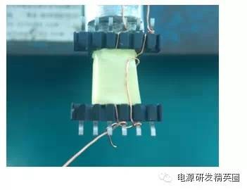 变压器承认书中一般会有电气图,如图1所示,其中每个绕组的黑色圆点表示同名端。所谓同名端,就是在两个(或多个)绕组中分别通以交流电(或者直流电产生静止磁场),当磁通方向迭加(同方向)时,两个绕组的电流流入端就是它们的同名端,两个绕组的电流流出端是它们的另一组同名端(如下,图1和图2表达的意思是相同的)。 ![]() 按照变压器正常制作工艺,常见有两种情况会导致同名端错误(或者说某个绕组相位反了):一是挂PIN相反,以图1为例,若其他条件不变,只将N1起始端和结束端互换,则其相位相反,这一点很好理解;二是反插骨架(也可以理解为改变绕线方向,即顺时针与逆时针互换),以卧式EF25(5+5PIN)骨架为例,若PIN1-5朝外绕制N1(3-1),与PIN6-10朝外绕制N1(3-1),相位刚好相反,以上两点均验证过。 了解以上信息后,下面列举两个实例,简单说明上述知识在设计中的应用 例1.客户资料要求如下:BOBBIN:EPC19 5+6PIN N1 4-5:φ0.3*1P*72Ts N2 1-2:φ0.3*1P*6Ts N3 7-6:φ0.3*1P*18Ts N4 11-10:φ0.3*1P*4Ts 常规绕法: PIN1-5朝外,起始端和结束端参照资料要求 绕制4-5结果如图3: ![]() 从图3可以看出,起始端和结束端相交,由于焊锡时起始端和结束端漆包线会损伤,容易造成短路,所以会加上铁氟龙套管增强绝缘,因此增加了制作成本,其余各绕组情况相同。 调整绕制工艺: PIN1-5朝外,起始端和结束端互换 N1 5-4:φ0.3*1P*72Ts N2 2-1:φ0.3*1P*6Ts N3 6-7:φ0.3*1P*18Ts N4 10-11:φ0.3*1P*4Ts 绕制5-4结果如图4: ![]() 从图4可以看出,起始端和结束端不相交,其余各绕组情况相同。 小结:同名端是一个相对的量,绕组同名端有两个而并非一个,同名端和起始端相关,但不是对应的关系,当然例1也有其它调整方法,这里就不再详述了。 例2.资料要求如下:SMD EE16 6+6 N1 6-4:φ0.3*1P*60Ts N2 8-9:φ0.3*1P*8Ts 常规绕法: PIN1-6统一朝外 N1 6-4:φ0.3*1P*60Ts N2 8-9:φ0.3*1P*8Ts 结果如图5: ![]() 从上图可以看出,绕制N2时,进线和出线靠近治具端(夹头),引线挂脚不容易操作,耗费了工时,增加了制作成本。 调整绕线工艺: 绕制N1时,PIN1-6朝外6-4:0.3*1P*60Ts 绕制N2时,PIN7-12朝外9-8:φ0.3*1P*8Ts 结果如图6: ![]() 从上图可以看出,绕制N2时,引线挂脚容易操作。 小结:改变骨架插入治具的方向即改变了绕组的相位,起始端和结束端位置互换也改变了绕组的相位,由于“负负得正”,所以不会出现同名端错误。 上述工艺的改变也具有局限性,有些情况是不能轻易变更的,例如1.绕组圈数少或跨度大,假设绕组圈数为1T,调整前后会出现1.1Ts和0.9T,相对来讲误差会很大;2.已经送过安规或者已经量产了的变压器,建议不要轻易改动;3.还有其它可能存在的未知问题。当然,一般改变变压器绕制工艺,都需要与客户沟通或送样品确认,所以在条件允许的情况下,可以尝试着改变! 总结:1.变压器有两组同名端,一般客户会给出一组同名端,该组同名端并非绕组的起始端。2.改变骨架插PIN方向或改变绕组起始端和结束端位置可以改变该绕组的相位,若所有绕组相位相同,则同名端一致。在设计过程中需要灵活运用上面的关系,旨在设计更加合理的变压器!......