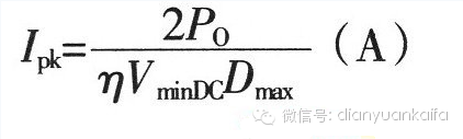 目前温馨提示:文章末尾有“脑经急转弯”有兴趣的可以挑战下 亲爱的朋友们:开通了微社区,可以进行交流了。""在本文最下方,点击"阅读原文"即可进入!!!(新增查询功能:回复10000/查快递;10001/查天气;10002/查火车票;10003/查机票;10004/查彩票) MOSFET开关管工作的最大占空比Dmax: ![]() 式中:Vor为副边折射到原边的反射电压,当输入为AC 220V时反射电压为135V;VminDC为整流后的最低直流电压; VDS为MOSFET功率管导通时D与S极间电压,一般取10V。 变压器原边绕组电流峰值IPK为: ![]() 式中:η为变压器的转换效率;Po为输出额定功率,单位为W。 变压器原边电感量LP: ![]() 式中:Ts为开关管的周期(s);LP单位为H。 变压器的气隙lg: ![]() 式中:Ae为磁芯的有效截面积(cm2);△B为磁芯工作磁感应强度变化值(T);Lp单位取H,IPK单位取A,lg单位为mm。 变压器磁芯 反激式变换器功率通常较小,一般选用铁氧体磁芯作为变压器磁芯,其功率容量AP为 ![]() 式中:AQ为磁芯窗口面积,单位为cm2;Ae为磁芯的有效截面积,单位为cm2;Po是变压器的标称输出功率,单位为W;fs为开关管的开关频率;Bm为磁芯最大磁感应强度,单位为T;δ为线圈导线的电流密度,通常取200~300A/cm2,η是变压器的转换效率;Km为窗口填充系数,一般为0.2~0.4;KC为磁芯的填充系数,对于铁氧体为1.0。 根据求得的AP值选择余量稍大的磁芯,一般尽量选择窗口长宽之比较大的磁芯,这样磁芯的窗口有效使用系数较高,同时可以减少漏感。 变压器原边匝数NP: ![]() 式中:△B为磁芯工作磁感应强度变化值(T),Ae单位为cm2,Ts单位为s。 变压器副边匝数Ns: ![]() 式中:VD为变压器二次侧整流二极管导通的正向压降。 功率开关管的选择 开关管的最小电压应力UDS ![]() 一般选择DS间击穿电压应比式(9)计算值稍大的MOSFET功率管。 绕组电阻值R: ![]() 式中:MUT为平均每匝导线长度(cm); N为导线匝数; 为20℃时导线每cm的电阻值(μΩ)。 绕组铜耗PCU为: ![]() 原、副边绕组电阻值可通过求绕组电阻值R的公式求出,当求原边绕组铜耗时,电流用原边峰值电流IPK来计算;求副边绕组铜耗时,电流用输出电流Io来计算。 磁芯损耗 磁芯损耗取决于工作频率、工作磁感应强度、电路工作状态和所选用的磁芯材料的性能。对于双极性开关变压器,磁芯损耗PC: ![]() 式中:Pb为在工作频率、工作磁感应强度下单位质量的磁芯损耗(W/kg); Gc为磁芯质量(Kg)。 对于单极性开关变压器,由于磁芯工作于磁滞回线的半区,所以磁芯损耗约为双极性开关变压器的一半。变压器总损耗为总铜耗与磁芯损耗之和。 |