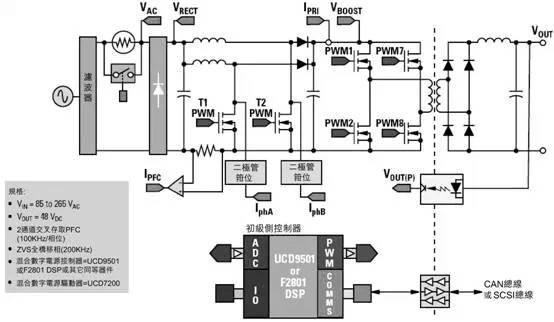 ![]() 数字电源技术 数字电源具有高性能和高可靠性的特点,其设计非常灵活。随著IC厂商不断推出新型号、性能更好的数字电源IC产品以及用户对数字电源认识的深入,数字电源的应用将会得到普及。 近年来,许多相关的因素导致对数字电源管理的需求急剧上升。许多板卡设计人员已经转向开发中间总线电源结构,通过使用多个单板DC/DC转换器来产生不同矽器件所需要的多样化的电源要求。这导致一个很明显的结果就是在产品的设计、生产测试及日常使用的过程中,配置、控制及监控这些电源将变得更加的复杂。光是控制上电/下电时序就需要专门的可编程集成电路及大量的额外部件,更别说用于灵活的系统级控制和诊断所需要的配置或实时反馈设施。 目前许多高性能的DC/DC转换器仍是通过简单的无源元件产生的模拟信号来进行设置和控制。即使具有最先进电源转换拓扑结构的高性能转换器,也有可能需要使用外部调节电阻和电容来确定诸如时间、输出点值及开关频率等参数。当然,这些参数没有一个是可以在匆忙中更改的,因此自适应的电源管理方案就不可能实现。 除了一些专门用于微处理器(其以VID代码的形式为输出电压控制提供有限的数字编程性)的转换器之外,市场上大多数砖形转换器、中间总线转换器及负载点(Point of load, POL)转换器仍然是采用模拟控制的。对数字控制需求最为迫切的是非隔离负载点转换器,因为这些转换器广泛用于板卡上并为器件提供最终电压。然而,这个需求也适合于隔离转换器,因此,毫无疑问,设计者们希望能够很快得到其他的数字可编程电源。一、数字电源的定义 数字电源或数字控制电源有几种不同的含义。 最简单的定义是通过数字接口控制开关稳压器,这可能包括通过I2C或类似的数字总线控制输出电压、开关频率或多通道电源的排序,、裕度控制、加电和断电排序等等都可以通过一个或多个数字信号控制。实际上,目前市场上的很多电源管理集成电路都以这种方式工作∶通过数字接口控制模拟开关稳压器。 第二个是给前面定义加上所谓的数字遥测。在这种情况下,提供额外的控制功能以监视开关电源的状态,如温度、输出电流、输入电流、输入电压、输出电压等,并根据需求或周期性地向主机报告。ID标记、故障状态信息甚至时间标记事件等其他信息也可以存储在片上非易失性存储器中,并在将来某个时间报告这些信息,具有大量数字集成电路的高端系统是这类数字电源的目标市场,而较低成本的消费类产品可能不需要这样的信息。 第三个也是最野心勃勃的数字电源含义是,用数字电路彻底取代开关稳压器中的所有模拟电路。据说这样将使开关稳压器更容易设计、配置、稳定、调节和销售。更进一步的理由是,通过编写几行简单的代码,一个核心数字电源集成电路就可以配置成升压稳压器、降压稳压器、负输出、SEPIC、反激式或正激式转换器。正是数字电源的这个含义最难以理解,因为从根本上来说,电源是模拟的。甚至用ADC和DSP取代误差放大器和脉冲宽度调制器的数字开关稳压器也仍然需要电压基准、电流检测电路和开关或FET驱动器。此外,电感器或变压器和电容器在实现数字电源时也是不能没有的。二、数字电源与模拟电源的区别 数字电源与模拟电源的区别主要集中在控制与通信部分。在简单易用、参数变更要求不多的应用场合,模拟电源产品更具优势,因为其应用的针对性可以通过硬件固化来实现,而在可控因素较多、实时反应速度更快、需要多个模拟系统电源管理的、复杂的高性能系统应用中,数字电源则具有优势。 此外,在复杂的多系统业务中,相对模拟电源,数字电源是通过软件编程来实现多方面的应用,其具备的可扩展性与重复使用性使用户可以方便更改工作参数,优化电源系统。通过实时过电流保护与管理,它还可以减少外围器件的数量。 数字电源有用DSP控制的,还有用MCU控制的。相对来讲,DSP控制的电源采用数字滤波方式,较MCU控制的电源更能满足复杂的电源需求、实时反应速度更快、电源稳压性能更好。 数字电源有什麽好处它首先是可编程的,比如通讯、检测、遥测等所有功能都可用软件编程实现。另外,数字电源具有高性能和高可靠性,非常灵活。 三、数字电源的发展 数字电源是一种新技术,现阶段其发展受到人们对它的一些误解而比较难推广∶ 1、数字电源成本高得吓人 过去,一说到“数字”,人们就认为成本高于传统的模拟解决方案──较之数字解决方案具有的其他优点,譬如尺寸缩小、具有灵活性与适应性、可测试性增强、诊断功能及扩展功能,成本高是一大负面因素。不过与使用所占空间较大的专有技术制造的模拟反馈回路相比,利用市场上现有的CMOS技术实现数字反馈回路所需成本较少。另外,采用真正数字电源的解决方案整体成本比其他现有方案低得多。 2、数字电源复杂得多 人们有一种观点,认为电源设计人员天生就是模拟技术设计人员,因而不想处理编程带来的复杂性。数字电源管理的支持者提出,我们不但对力求创新的设计人员 (他们并没有受到兴起的数字电源的威胁)没有给予足够重视,而且实际上,编程并不是意味著编写代码,其实只是处理向导程序驱动的图形用户界面(GUI),以获得各种系统级优点,其中包括∶ (1)通过实时遥测技术简化了系统级温度管理