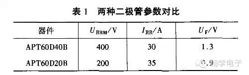 图1为正激变换器次级拓扑结构电路,VD1为整流二极管,VD2是续流二极管,Lf是输出滤波电感,Cf是输出滤波电容。当初级开关管开通时,VD1导通,VD2截止,初级能量向负载转移;当初级开关管关断时,VD1关断,VD2开通,滤波电感电流通过VD2续流。以上只是理想状态,若考虑功率二极管的反向恢复特性和变压器漏感,当VD1(或V D2)处于反向恢复期时,有一冲击电流流经变压器,并将能量储存于变压器漏感中,此能量将使二极管承受较大的反向电压冲击。这样一方面需选用较高耐压等级的二极管,另一方面产生的EMI也较大。此外,由于变压器存在绕线电阻,此能量会使变压器发热。如何有效处理漏感能量呢?最常用的办法是将无源RC缓冲电路与每只功率二极管并联,如图2所示,使漏感能量都消耗在缓冲器上。工作频率越高,缓冲器消耗的能量越多,因此,变换器频率和效率都不高。下面将介绍一种有源箱位电路,它能将功率二极管反向电压籍位在一较低范围内,并且能量回收电路将漏感所存储的能量无损耗地转移到负图1 DC载,便于实现变换器的小型化。 ![]() ![]() 电路原理分析 DC 一DC 次级有源籍位电路如图3所示,L2表示变压器次级的漏感,由VDI、VD2、VD3、VD4、C1组成全桥结构籍位电路,VD1、VD2是正激变换次级主整流二极管和续流二极管。对于这种全桥结构,加在每个主二极管上的最大反向电压就是电容CI的电压。因此,如果能将C1电压籍在小于每个二极管的最大反向电压,二极管就可实现安全籍位了VT3、L3、VD5、C组成升-降压式的能量回收电路。下面将分5个阶段对DC -DC次级有源籍位电路一个周期内工作过程进行分析,参见图4(图中纵坐标比例不一致)。 ![]() 为了便于分析,作出如下假设: (a) 输出电感Lf足够大,在一个开关周期内,其电流基本保持不变,因此L和C以及负载可看成一个电流为I。的恒流源;(b) 变压器除考虑次级漏感外视为理想器件;(c) 主二极管VD;和续流二极管VD,除考虑反向恢复特性外其它均不考虑;(d) 其它元件都是理想的。 t0一 t1。to时刻,变换器初级开关管开通,变压器次级线圈电压U,翻转为Up,k为变压器初次级匝比。整流二极管VD,正向偏置导通,流过玩、VD,的电流线性增长,增长率为di/dt= U sec/L 2。由于二极管的反向恢复特性,VD2 尚未关断,IVD2以相同的速率减小,但总的I0不变。 t1一 t2。IL2 在t时刻达到最大值IL2(max)二Io+IRR,其中IRR为VD的反向恢复电流峰值。t1时刻,VD2反向恢复期结束后关断,VD2上开始有反向电压,籍位二极管VD;导通。此时,籍位电路将加在VD上的反向电压籍位为C1的电压,L上多余的能量向C1转移,IL2下降,Uc,增加。t时刻,IL2= I0,VD4关断。 ![]() 可以计算出这段时间转移到C2上的能量为: ![]() t2一 t3。t2时刻 , VT3开通,而在此之前,IL3=0,因此VT3实现了零电流开通,开通损耗很小。C1上储存的能量通过负载L3-VT3通路向负载和L3转移,IL3增加。由于I。不变,IVDI将减小。t3时刻,C1复位。 ![]() t3 一 t4。t3时刻,变换器初级开关管关断,同时VT3关断,I0和IVDI线性减小,减率di/dt=U,以相同速率线性增加。储存于L3上的能量转移到C上,IL3减小,其减小率为dIL3/dt=一Uo/L3。若忽略R3损耗,(因为在模块正常工作时R3上消耗的功率约0.3W )C与负载并联,这样L3上的能量就转移到负载上去了。 ![]() t4 一 t5。t时刻 ,IL2和,VDl达到负的,而IVD2达到最大值,ID2(MAX)=Io+IRR,VD1关断,籍位二极管VD3开通。此时,加在VD1上的反向电压为籍位电容C1的电压,漏感上的能量通过VD2-Cl-VD3-L通路向C,转移,UCi增加。t5时刻,IL2 为0,这段时间转移到C1上的能量为: t5时刻后,输出电感通过VD续流,以维持输出电流连续。此后开始新的周期,状态同(1)。 性能分析 1、能量分析 由于变压器的漏感与绕制工艺和磁芯材料有关,为了简化分析在这里将它看成一常量。由以上分析可知:在一个开关周期内漏感所储存的能量为: ![]() 单位时间内漏感所储存的能量为: ![]() 式中,f为变换器的工作频率。若采用RC缓冲器与主二极管并联,这部分能量全消耗在缓冲器上。由该式可看出,P与f成正比,这使得采用RC缓冲器的变换器工作频率和效率难以提高。若采用本文介绍的能量回收电路,这部分能量全部转移到负载上,有利于提高工作频率和效率。 2、有源箱位分析 由以上分析可知,在一个开关周期内漏感所储存的能量均转移到籍位电容C1上,由此可得C,上电压增量△U为变换器的实验结果。 ![]() 图 5是籍位电容C1两端电压波形。由图可看出,其电压是在160V平均电压上有些波动,但最大值不超过180V。因此,整流(续流)二极管用低耐压200V的二极管是很安全的。 ![]() 表 1是可选用的两种二极管的参数对比,显然,200V比400V的二极管有更低导通压降,同等条件下,用200V的二极管导通损耗更低。 ![]() 为了确保二极管安全箱位,也就是当籍位电容吸收漏感多余能量而电压升高时二极管不会有烧坏的危险,籍位电容的电容量需要大些。这样,在每个开关周期,籍位电容上的电压就是在一平均电压基础上有微小的波动。由此可知,C1越大,DU越小。但C越大,体积和价格也相应增加。因此,只要选择合适的C值,DU就可确定,U十△U(主二极管上的最大反向电压)也确定了。将它与手册上拟选用二极管的最大反向电压相比较,即可确定二极管工作是否安全。表中,IRR反向恢复电流峰值在Tj=100℃条件下测得;OF导通压降在if=60A,Ti =150℃条件下测得。此外经计算:选用400V 功率二极管,RC缓冲电路总损耗137W;选用400V功率二极