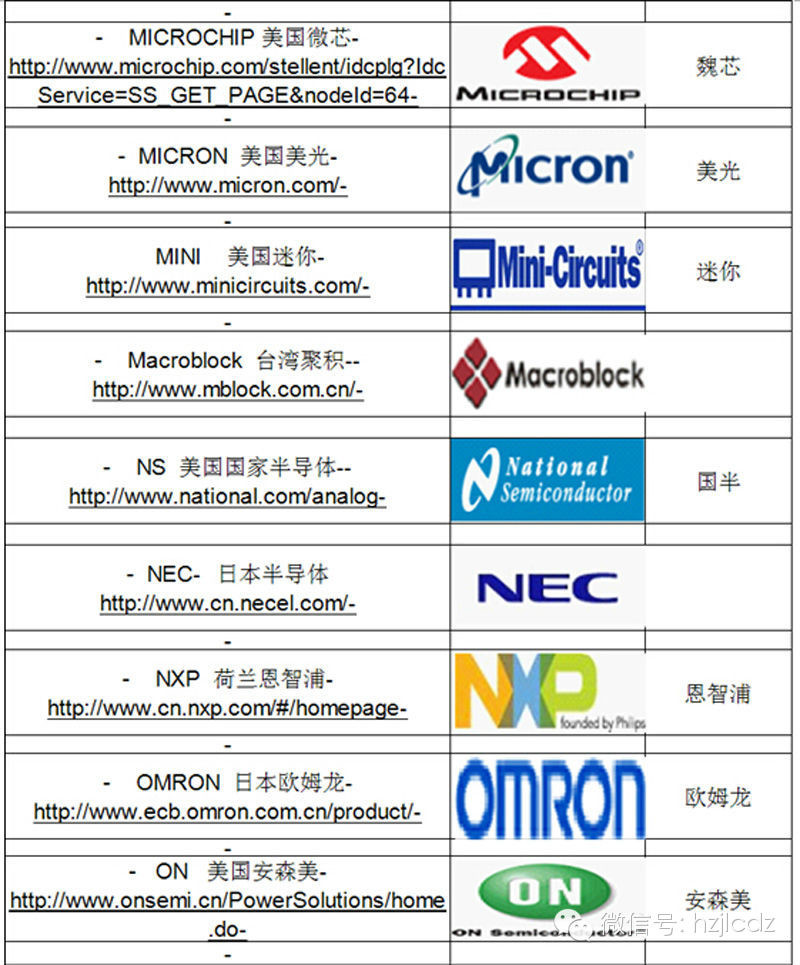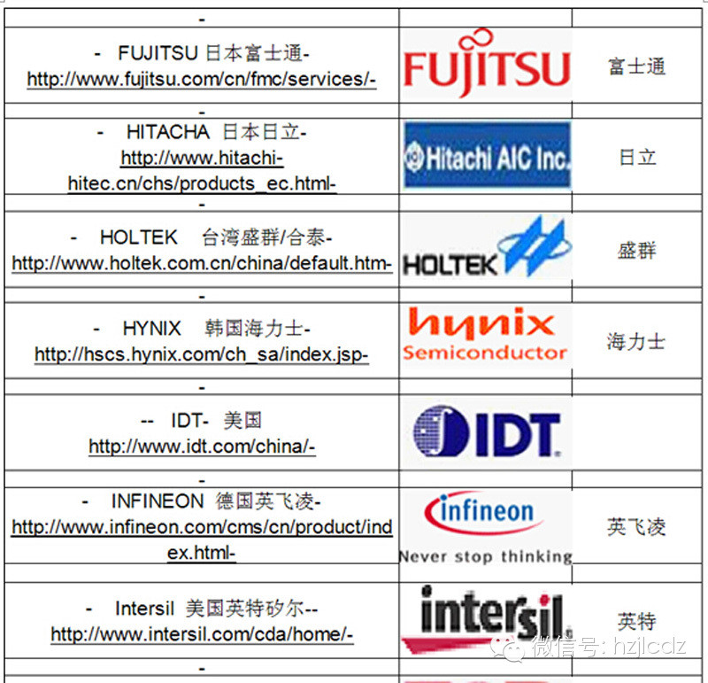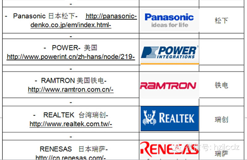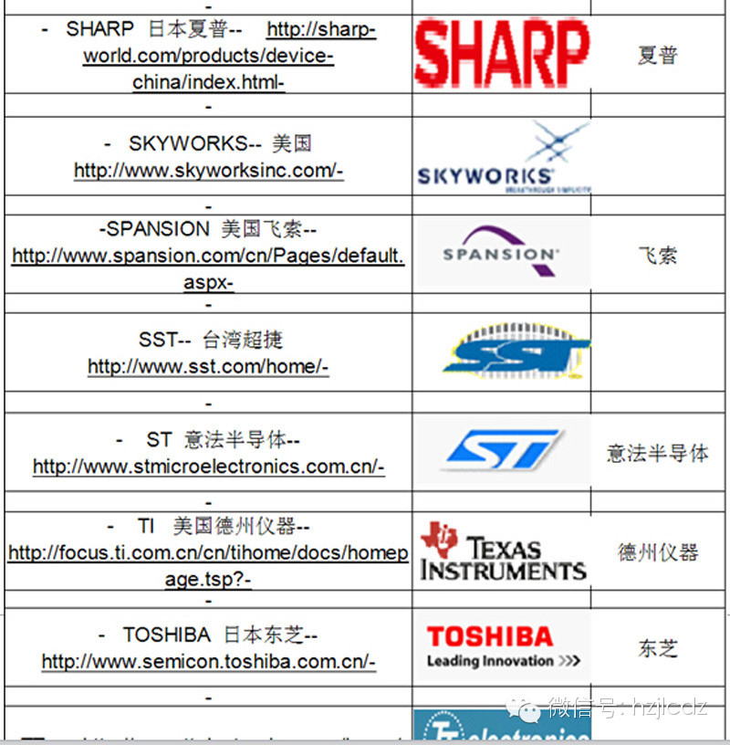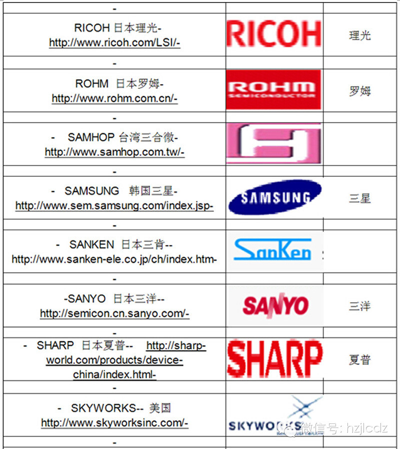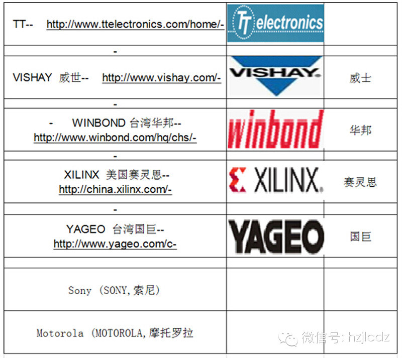 电子元器件各大牌子及中文名