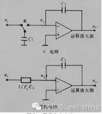 ![]() 在电子系统里滤波器是很见的组成部分,可以通过R,L,C的搭配组成各种滤波电路。一阶RC滤波器的截止频率等于1/2*pi*RC.,R,C,L串联可以搭建二阶带通滤波器等等。 在电源处理时经常会用到滤波器。为了保证输入到芯片的电源电压的稳定,通常的做法是在VCC和地之间跨接一个大电容和一个小电容并联。也可以采用RC滤波的方式来实现电源的稳定,最好不要在电路板电源的根部采用RC滤波,而是在需要电源滤波的芯片处采用RC滤波,因为电阻的存在必然导致分压,如果在电源根部RC滤波电路板整个板子的电流大的话会在R上形成很大的压降,导致输出电压变小,而在芯片根处采用RC滤波,一般芯片的工作电流在几十mA,这时R的选择余地会比较大,而且滤波效果较好。LC滤波我不经常使用,不是很了解,不知道大家的理解如何。 最近使用了美信的可编程滤波器和引脚可配置滤波器,它们采用都是开关电容滤波器。 这幅图说的比较清楚,实际上就是用开关电容(SC)来取代电阻器,开关K置于左边时,信号电压源u1向电容器C1充电;K倒向右边时,电容器C1向电压源u2放电。当开关以高于信号的频率fc工作时,使C1在u1和u2的两个电压节点之间交替换接,那么C1在u1、u2之间传递的电荷可形成平均电流I=fC1(u1-u2),相当于图1a的u1和u2之间接入了一个等效电阻,其值为1/fC1。 推导是这样的:在信号源向电容充电时Q=C1*U,然后这个电流供给运放使用,因此平均电流为I=C1*U/T,如果T足够短,可以近似认为这个过程是连续的,因而可以在两节点间定义一个等效电路Req=U/I=T/C1=1/f*C1。这个电路的等效时间常数就是τ=RC2=C2/f*C1. 我开始使用的是MAX274,这款开关电容滤波器是通过改变引脚的电阻值来改变中心频率f0,增益G,带宽Q。它不需要外接时钟信号来提供开关频率用,估计是采用了内部RC振荡电路。设计MAX274是美信官网上有个辅助软件,把所需的参数输进去,会自动计算出各个电阻的阻值,实践发现即使自己搭电路的阻值取得跟软件计算出的阻值有一点差别,中心频率等差别也不会很大。 后来觉得274改变参数太麻烦,采用了另外一款开关电容滤波器MAX262,这是个引脚可编程滤波器,使用起来非常方便,需要外接时钟信号提供f。这样的好处是开关频率非常稳,使得中心频率也能够做到跟设定值1%的误差。使用MAX262也有个辅助软件,但我觉得这个软件计算的MAX262的参数值是错的,还是以数据手册为准!使用MAX262也很方便,就是往寄存器里写入几个值(应该是ROM型,掉电不丢失),通过给定的时钟频率,然后除以想要的中心频率,得出的N值写出寄存器就可以了,N通过查表可以得到,这样可以设定F0.同时可以设定Q,Q对应的也有N值,写到对应的寄存器里。Q值一方面是带宽,另一方面也等于放大倍数。只要时序正确,写入数据也不困难。 在使用中也遇到了一些问题:这就是像这些滤波器的增益千万不要调的太大,比如1000倍,因为这时候当输入引脚有噪声存在时,噪声中肯定有你设定的中心频率F0的分量,由于滤波器的优异性能,它会把噪声里的F0分量给放大出来到输出端,导致有效信号反而无法检测,这也是使用过程中应该留意的! |