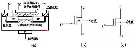 先讲讲MOS/CMOS集成电路MOS集成电路特点:制造工艺比较简单、成品率较高、功耗低、组成的逻辑电路比较简单,集成度高、抗干扰能力强,特别适合于大规模集成电路。MOS集成电路包括:NMOS管组成的NMOS电路、PMOS管组成的PMOS电路及由NMOS和PMOS两种管子组成的互补MOS电路,即CMOS电路。PMOS门电路与NMOS电路的原理完全相同,只是电源极性相反而已。数字电路中MOS集成电路所使用的MOS管均为增强型管子,负载常用MOS管作为有源负载,这样不仅节省了硅片面积,而且简化了工艺利于大规模集成。常用的符号如图1所示。 N沟MOS晶体管金属-氧化物-半导体(Metal-Oxide-SemIConductor)结构的晶体管简称MOS晶体管,有P型MOS管和N型MOS管之分。MOS管构成的集成电路称为MOS集成电路,而PMOS管和NMOS管共同构成的互补型MOS集成电路即为CMOS集成电路。 由p型衬底和两个高浓度n扩散区构成的MOS管叫作n沟道MOS管,该管导通时在两个高浓度n扩散区间形成n型导电沟道。n沟道增强型MOS管必须在栅极上施加正向偏压,且只有栅源电压大于阈值电压时才有导电沟道产生的n沟道MOS管。n沟道耗尽型MOS管是指在不加栅压(栅源电压为零)时,就有导电沟道产生的n沟道MOS管。 NMOS集成电路是N沟道MOS电路,NMOS集成电路的输入阻抗很高,基本上不需要吸收电流,因此,CMOS与NMOS集成电路连接时不必考虑电流的负载问题。NMOS集成电路大多采用单组正电源供电,并且以5V为多。CMOS集成电路只要选用与NMOS集成电路相同的电源,就可与NMOS集成电路直接连接。不过,从NMOS到CMOS直接连接时,由于NMOS输出的高电平低于CMOS集成电路的输入高电平,因而需要使用一个(电位)上拉电阻R,R的取值一般选用2~100KΩ。 N沟道增强型MOS管的结构在一块掺杂浓度较低的P型硅衬底上,制作两个高掺杂浓度的N+区,并用金属铝引出两个电极,分别作漏极d和源极s。 然后在半导体表面覆盖一层很薄的二氧化硅(SiO2)绝缘层,在漏源极间的绝缘层上再装上一个铝电极,作为栅极g。 在衬底上也引出一个电极B,这就构成了一个N沟道增强型MOS管。MOS管的源极和衬底通常是接在一起的(大多数管子在出厂前已连接好)。 它的栅极与其它电极间是绝缘的。 图(a)、(b)分别是它的结构示意图和代表符号。代表符号中的箭头方向表示由P(衬底)指向N(沟道)。P沟道增强型MOS管的箭头方向与上述相反,如图(c)所示。 N沟道增强型MOS管的工作原理(1)vGS对iD及沟道的控制作用 ① vGS=0 的情况 从图1(a)可以看出,增强型MOS管的漏极d和源极s之间有两个背靠背的PN结。当栅源电压vGS=0时,即使加上漏源电压vDS,而且不论vDS的极性如何,总有一个PN结处于反偏状态,漏源极间没有导电沟道,所以这时漏极电流iD≈0。 ② vGS>0 的情况 若vGS>0,则栅极和衬底之间的SiO2绝缘层中便产生一个电场。电场方向垂直于半导体表面的由栅极指向衬底的电场。这个电场能排斥空穴而吸引电子。 排斥空穴:使栅极附近的P型衬底中的空穴被排斥,剩下不能移动的受主离子(负离子),形成耗尽层。吸引电子:将 P型衬底中的电子(少子)被吸引到衬底表面。 (2)导电沟道的形成: 当vGS数值较小,吸引电子的能力不强时,漏源极之间仍无导电沟道出现,如图1(b)所示。vGS增加时,吸引到P衬底表面层的电子就增多,当vGS达到某一数值时,这些电子在栅极附近的P衬底表面便形成一个N型薄层,且与两个N+区相连通,在漏源极间形成N型导电沟道,其导电类型与P衬底相反,故又称为反型层,如图1(c)所示。vGS越大,作用于半导体表面的电场就越强,吸引到P衬底表面的电子就越多,导电沟道越厚,沟道电阻越小。 开始形成沟道时的栅源极电压称为开启电压,用VT表示。 上面讨论的N沟道MOS管在vGS<VT时,不能形成导电沟道,管子处于截止状态。只有当vGS≥VT时,才有沟道形成。这种必须在vGS≥VT时才能形成导电沟道的MOS管称为增强型MOS管。沟道形成以后,在漏源极间加上正向电压vDS,就有漏极电流产生。 vDS对iD的影响