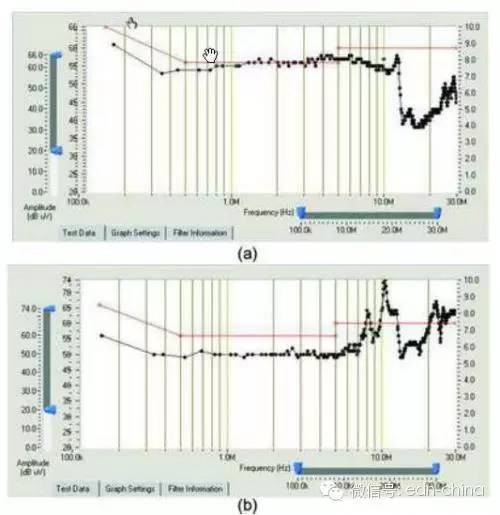 随着电子技术的发展,电磁兼容性问题成为电路设计工程师极为关注和棘手的问题。 根据多年的工程经验,大家普遍认为电磁兼容性标准中最重要的也是最难解决的两个项目就是传导发射和辐射发射。为了满足传导发射限制的要求,通常使用电磁干扰(EMI)滤波器来抑制电子产品产生的传导噪声。但是怎么选择一个现有的滤波器或者设计一个能满足需要的滤波器?工程师表现得很盲目,只有凭借经验作尝试。首先根据经验使用一个滤波器,如果不能满足要求再重新修改设计或者换另一个新的滤波器。因此,要找到一个合适的EMI滤波器就成为一个费时且高成本的任务。 电子系统产生的干扰特性 解决问题首先要了解电子系统产生的总干扰情况,需要抑制多少干扰电压才能满足标准要求?共模干扰是多少,差模干扰是多少?只有明确了这些干扰特性我们才能根据实际的需要提出要求。 从被测物体的电流路径来看,干扰信号回流路径可能通过地线,或者通过其它电网,如图1所示。通过地线的干扰电流在电源网上产生同相位的共模干扰电压。通过其它线在两根电源线上产生反相的差模干扰电压。干扰电流的路径如图2所示。 ![]() 图1 干扰信号的回流路径 ![]() 图2 a)差模干扰滤波和b)共模干扰滤波 通常有四种技术可进行电源滤波,以便抑制干扰噪声。在实际使用中,经常是混合使用其中的两种,甚至多种技术。它们是: 正负极电源线之间添加电容,即X电容; 每根电源线和地线之间添加电容,即Y电容; 共模抑制(两根电源线上的抑制线圈同向绕线); 差模抑制(每根电源线有它自己的抑制线圈)。 电容的作用是将高频干扰电压“短路”,另外,当干扰信号频率很高时,抑制线圈将产生很大的交流阻抗。图2显示了两种滤波类型的结构,其中,LISN是用于测量目的的线性阻抗稳定网络。如果是共模问题引起的干扰,X类型电容基本上没有作用,因为两线上的干扰电压是一样的。因此,了解干扰类型对于选择合理的电路结构将起重要作用,并为解决问题提供技术依据。 在标准电磁兼容性测试实验室可得到设备的总干扰情况,但无法了解设备的共模干扰和差模干扰特性。为了在测量中分辨共模或者差模干扰信号,通用的仪器是很难实现的。使用专用的传导测试仪,可获得设备的总干扰、共模干扰和差模干扰。测试结果如图3所示。 ![]() 图3 传统测试仪获得的总干扰、共模干扰和差模干扰 电源输入阻抗特性 滤波器的制造商给出的滤波器插损是在50W标准阻抗系统中的性能。众所周知,电源的输入阻抗随着频率的变化具有不连续性。阻抗的改变导致滤波器的插损特性产生很大的变化。 由图4可见,在一个50W的系统中,100mH的滤波器提供约18dB的衰减,但是在一个500W系统中只提供约4dB的衰减。 同样对于100nF电容器;在50W系统中,1MHz时大约23dB的衰减在5W系统中降至7dB。 上面的例子说明,选择一个具有很高插损的滤波器也不能很好抑制传导噪声的原因是,电源输入端阻抗的影响。因此,设计者除了选择一个合适的滤波器之外,还需要了解电源的阻抗特性、共模阻抗和差模阻抗。阻抗测试可以借助专用的阻抗测试仪或者传导分析仪。一种滤波器的共模阻抗(a)和差模阻抗(b)的变化如图5所示。 ![]() 图4 a)100uh电感的衰减 b)100nF电容器的衰减 ![]() 图5 a)共模阻抗和b)差模阻抗的变化 滤波器的设计 知道设备的干扰特性和输入阻抗特性后,设计或者选择一个滤波器就变得简单了。如果使用一个现成的滤波器,可以调用过去积累的滤波器数据库,比对滤波器参数,找到一个合适的滤波器。如果没有合适的或者想专门设计一个专用滤波器,可以借助专用的滤波器设计软件。在确定一个滤波器模式后输入滤波器一些简单的约束条件,设计软件根据阻抗特性自动计算出最合适的组件值,以及提供最合适的衰减。(如图6所示) ![]() 图6 一种由软件设计的最佳滤波器 设计结果 在对某产品进行了干扰特性和阻抗特性测试后,需要解决一个低于5MHz的低频干扰问题。专用滤波器设计软件结合前面得到的测试数据给出了滤波器的元件参数:包括470nF的X电容器,2.2nF的Y电容器和15.1mH的共模电感。但是有经验的滤波器设计人员认为采用一个13.5mH共模电感的滤波器是足够了。使用一个13.5mH包括额外高频组件的滤波器的发射情况如图7所示。 ![]() 图7 最小15mH的系统使用和18mH时的测试结果 为了验证软件的设计数据,将470nF、2.2nF和18mH的非定制的滤波器迅速连接到系统中,获得中心频率小于5MHz,并且无需高频滤波器。结果清楚地表明,最小15mH的限制是合适的。 结语 EMI滤波器的设计应该充分考虑干扰特性和阻抗特性,在阻抗测试和干扰特性测试数据基础上进行设计是精确滤波设计的唯一方法。