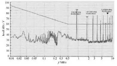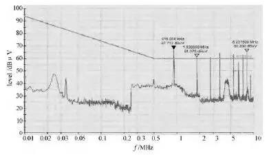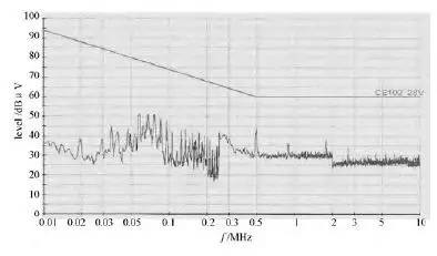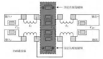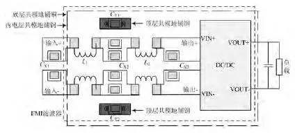 随着开关电源的迅速发展和广泛应用,它们引起的电磁泄露和电磁辐射问题越来越严重。电源EMI滤波器作为开关电源的辅助器件,可以有效地抑制开关电源中的传导干扰。 EMI滤波器又称作电源线滤波器,安装在电源线与设备之间,既能有效阻止外界的电磁干扰经电源线进入设备,又能阻挡设备自身工作中产生的电磁骚扰经电源线进入电网,所以EMI滤波器是电源抗干扰和干扰抑制设计中非常重要的器件。电磁兼容性问题是衡量电子产品质量的一个重要指标,日益成为电子产品设计中的关键项目。在电源系统设计过程中,引入电磁兼容性设计,可以提高电源系统的整体抗干扰能力,延长系统的使用寿命,确保使用的安全性。EMC电源线传导发射即CE102是用来测量EUT输入电源线上的传导发射的,而通过CE102 10 kHz~10 MHz电源线传导发射试验是当前几乎所有军用供电设备需满足的设计要求,EMI滤波器设计不当,将直接导致电源线传导发射超标,设计失败。EMI 滤波器设计传导型的EMI 噪声包括共模噪声和差模噪声两种。共模噪声存在于所有的交流相线和共模地之间,其产生来源被认为是电气回路之间绝缘电流以及电磁耦合等。差模噪声存在于交 流相线之间,产生来源是脉动电流,开关器件的振铃电流以及二极管的反向恢复电流。所以在进行EMI滤波器设计时,以滤除共模噪声和差模噪声为目标开展设计。 本文设计了一个LC 滤波器作为EMI滤波器,其原理框图如图1虚线框中所示,图中负载为一高速开关电路。电路中L1和L2为共模电感,CX1,CX2,CX3,CY1,和 CY1为滤波电容,L1,和L2,被设计用来抑制共模干扰,但由于实际电感在生产时的不对称,其对差模干扰也有一定的抑制作用,CX1,CX2和CX3并 联在电源正负线两端,主要用来抑制差模干扰,而CY1 和CY2 分别从负、正电源线引出到共模地,主要用来抑制共模干扰。 图1 EMI滤波器原理框图共模电感值的选取与负载情况有关,即电感值与其通过的额定电流有关,关系如表1所示。 ![]() LC滤波器的3 dB截止频率为: 对于共模等效电路,滤波器相当于一个LCL 滤波器,对于差模等效电路,滤波器相当于一个CL′CL′C′滤波器,均可通过公式(1)计算得出所需电容值,差模等效电路中,由于L′值为共模电感生产不精确引入的,值较小,计算时可忽略不计。依据GJB152A CE102 试验方法,测试链路图如图2所示。 图2 CE102测量配置图图中EUT 为被测设备,在以下两种条件下开展CE102测试: 测试条件一:不加EMI滤波器,开关电路负载情况下的测试; 测试条件二:添加所设计EMI滤波器,开关电路负载情况下的测试。 测试条件一和测试条件二的正线传导骚扰测试结果图如图3、图4所示。 图3 测试条件一CE102正线传导骚扰图 图4 测试条件二正线传导骚扰图由测试图可见,添加所设计滤波器后,超标频点传导骚扰虽然得到抑制,但依旧超标,无法通过试验。通过扫描回线传导骚扰发现,回线传导骚扰与正线在相同频点处超标,且幅值相差不大,从而可判断干扰为共模干扰,说明该滤波器在设计应用后,共模干扰没有得到有效滤除。 设计整改在该EMI 滤波器设计时,CY1 和CY2 分别从负、正电源线引出到共模地,即将共模干扰信号引导入共模地来消除共模干扰,可见共模地的设计很关键,而共模地的设计主要体现在PCB设计上。在 PCB设计时,Y电容共模地覆铜面积仅在表层铺设且面积不大,如图5 所示(虚线框为实际共模地覆铜面积),这极有可能是造成EMI滤波器没有完全滤除开关电源的共模噪声的原因所在。 对PCB进行更改,增大共模地铺铜面积,在多层敷设共模地网络(该板为6层板),并且将共模地的铺铜面积覆盖DC-DC 模块下面,设计如图6 所示重新制板生产。 按照上文所述办法重新进行CE102试验,测试结果图(正线)如图7所示,回线情况与正线情况类似。 图5 EMI滤波器共模地布局情况 图6 整改后的EMI滤波器共模地布局情况 图7 整改后的正线传导骚扰图可见,经重新PCB布局后,滤波器成功将共模噪声抑制并满足测试要求,说明在PCB设计时共模地设计对EMI滤波器的设计成功至关重要。 结语 EMI滤波器可有效滤除开关电源的共模噪声和差模噪声,在开关电源的设计中,越来越受关注。一个原 理正确的EMI滤波器设计,在实际工程应用中,会由于PCB设计不当,造成滤波器失效。本文通过CE102实验验证,证明了共模地的PCB设计在EMI滤 波器设计中至关重要,同时证明了本文设计的EMI滤波器的有效性。
