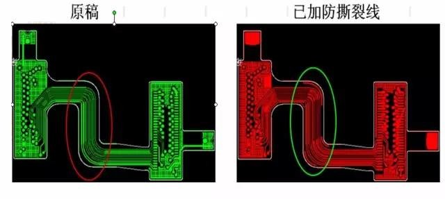 解决方案:如何防止弯折区断裂和撕裂,设计要考虑在靠转角处增加防撕裂线或加大靠外形处线路,外形角度须改成为1.0mm。