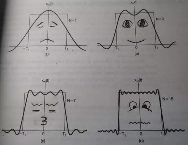 这篇文章的核心思想就是: 要让读者在不看任何数学公式的情况下理解傅里叶分析。 ![]() 傅里叶分析不仅仅是一个数学工具,更是一种可以彻底颠覆一个人以前世界观的思维模式。但不幸的是,傅里叶分析的公式看起来太复杂了,所以很多大一新生上来就懵圈并从此对它深恶痛绝。老实说,这么有意思的东西居然成了大学里的杀手课程,不得不归咎于编教材的人实在是太严肃了。(您把教材写得好玩一点会死吗?会死吗?)所以我一直想写一个有意思的文章来解释傅里叶分析,有可能的话高中生都能看懂的那种。所以,不管读到这里的您从事何种工作,我保证您都能看懂,并且一定将体会到通过傅里叶分析看到世界另一个样子时的快感。至于对于已经有一定基础的朋友,也希望不要看到会的地方就急忙往后翻,仔细读一定会有新的发现。 以上是定场诗 下面进入正题: 抱歉,还是要啰嗦一句:其实学习本来就不是易事,我写这篇文章的初衷也是希望大家学习起来更加轻松,充满乐趣。但是千万!千万不要把这篇文章收藏起来,或是存下地址,心里想着:以后有时间再看。这样的例子太多了,也许几年后你都没有再打开这个页面。无论如何,耐下心,读下去。这篇文章要比读课本要轻松、开心得多…… 一、啥叫频域 从我们出生,我们看到的世界都以时间贯穿,股票的走势、人的身高、汽车的轨迹都会随着时间发生改变。这种以时间作为参照来观察动态世界的方法我们称其为时域分析。而我们也想当然的认为,世间万物都在随着时间不停的改变,并且永远不会静止下来。但如果我告诉你,用另一种方法来观察世界的话,你会发现世界是永恒不变的,你会不会觉得我疯了?我没有疯,这个静止的世界就叫做频域。 先举一个公式上并非很恰当,但意义上再贴切不过的例子: 在你的理解中,一段音乐是什么呢? ![]() 这是我们对音乐最普遍的理解,一个随着时间变化的震动。但我相信对于乐器小能手们来说,音乐更直观的理解是这样的: ![]() 好的!下课,同学们再见。 是的,其实这一段写到这里已经可以结束了。上图是音乐在时域的样子,而下图则是音乐在频域的样子。所以频域这一概念对大家都从不陌生,只是从来没意识到而已。 现在我们可以回过头来重新看看一开始那句痴人说梦般的话:世界是永恒的。 将以上两图简化: 时域: 频域: 在时域,我们观察到钢琴的琴弦一会上一会下的摆动,就如同一支股票的走势;而在频域,只有那一个永恒的音符。所以,你眼中看似落叶纷飞变化无常的世界,实际只是躺在上帝怀中一份早已谱好的乐章。 抱歉,这不是一句鸡汤文,而是黑板上确凿的公式:傅里叶同学告诉我们,任何周期函数,都可以看作是不同振幅,不同相位正弦波的叠加。在第一个例子里我们可以理解为,利用对不同琴键不同力度,不同时间点的敲击,可以组合出任何一首乐曲。 而贯穿时域与频域的方法之一,就是传中说的傅里叶分析。傅里叶分析可分为傅里叶级数(Fourier Serie)和傅里叶变换(Fourier Transformation),我们从简单的开始谈起。 二、傅里叶级数(Fourier Series) 还是举个栗子(举个例子)并且有图有真相才好理解。 如果我说我能用前面说的正弦曲线波叠加出一个带 90 度角的矩形波来,你会相信吗?你不会,就像当年的我一样。但是看看下图: ![]() 第一幅图是1个(郁闷的)正弦波 cos(x) 第二幅图是 2 个(卖萌的)正弦波的叠加 cos (x) +a.cos (3x) 第三幅图是 4 个(发春的)正弦波的叠加 第四幅图是 10 个(便秘的)正弦波的叠加 随着正弦波数量逐渐的增长,他们最终会叠加成一个标准的矩形,大家从中体会到了什么道理? 随着叠加的递增,所有正弦波中上升的部分逐渐让原本缓慢增加的曲线不断变陡,而所有正弦波中下降的部分又抵消了上升到最高处时继续上升的部分使其变为水平线。一个矩形就这么叠加而成了。但是要多少个正弦波叠加起来才能形成一个标准 90 度角的矩形波呢?不幸的告诉大家,答案是无穷多个。(上帝:我能让你们猜着我?) 不仅仅是矩形,你能想到的任何波形都是可以如此方法用正弦波叠加起来的。这是没有接触过傅里叶分析的人在直觉上的第一个难点,但是一旦接受了这样的设定,游戏就开始有意思起来了。 还是上图的正弦波累加成矩形波,我们换一个角度来看看: 在这几幅图中,最前面黑色的线就是所有正弦波叠加而成的总和,也就是越来越接近矩形波的那个图形。而后面依不同颜色排列而成的正弦波就是组合为矩形波的各个分量。这些正弦波按照频率从低到高从前向后排列开来,而每一个波的振幅都是不同的。一定有细心的读者发现了,每两个正弦波之间都还有一条直线,那并不是分割线,而是振幅为 0 的正弦波!也就是说,为了组成特殊的曲线,有些正弦波成分是不需要的。这里,不同频率的正弦波我们成为频率分量。 好了,关键的地方来了!! 如果我们把第一个频率最低的频率分量看作“1”,我们就有了构建频域的最基本单元。 对于我们最常见的有理数轴,数字“1”就是有理数轴的基本单元。 (好吧,数学称法为基。在那个年代,这个字还没有其他奇怪的解释,后面还有正交基这样的词汇我会说吗?) 时域的基本单元就是“1 秒”,如果我们将一个角频率为的正弦波 cos(t)看作基础,那么频域的基本单元就是。 有了“1”,还要有“0”才能构成世界,那么频域的“0”是什么呢?cos(0t)就是一个