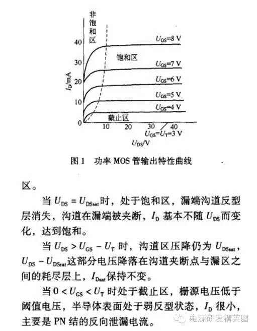 初学者到底该怎样去学习和研发开关电源?--让小编来告诉你 1 极限参数: ID :最大漏源电流.是指场效应管正常工作时,漏源间所允许通过的最大电流.场效应管的工作电流不应超过 ID .此参数会随结温度的上升而有所减额. IDM :最大脉冲漏源电流.体现一个抗冲击能力,跟脉冲时间也有关系,此参数会随结温度的上升而有所减额. PD :最大耗散功率.是指场效应管性能不变坏时所允许的最大漏源耗散功率.使用时,场效应管实际功耗应小于 PDSM 并留有一定余量.此参数一般会随结温度的上升而有所减额.(此参数靠不住) VGS :最大栅源电压.,一般为:-20V~+20V Tj :最大工作结温.通常为 150 ℃或 175 ℃ ,器件设计的工作条件下须确应避免超过这个温度,并留有一定裕量. (此参数靠不住) TSTG :存储温度范围. 2 静态参数 V(BR)DSS :漏源击穿电压.是指栅源电压 VGS 为 0 时,场效应管正常工作所能承受的最大漏源电压.这是一项极限参数,加在场效应管上的工作电压必须小于 V(BR)DSS . 它具有正温度特性.故应以此参数在低温条件下的值作为安全考虑. 加负压更好。 △V(BR)DSS/ △ Tj :漏源击穿电压的温度系数,一般为 0.1V/ ℃. RDS(on) :在特定的 VGS (一般为 10V )、结温及漏极电流的条件下, MOSFET 导通时漏源间的最大阻抗.它是一个非常重要的参数,决定了 MOSFET 导通时的消耗功率.此参数一般会随结温度的上升而有所增大(正温度特性). 故应以此参数在最高工作结温条件下的值作为损耗及压降计算. VGS(th) :开启电压(阀值电压).当外加栅极控制电压 VGS超过 VGS(th) 时,漏区和源区的表面反型层形成了连接的沟道.应用中,常将漏极短接条件下 ID 等于 1 毫安时的栅极电压称为开启电压.此参数一般会随结温度的上升而有所降低. IDSS :饱和漏源电流,栅极电压 VGS=0 、 VDS 为一定值时的漏源电流.一般在微安级. IGSS :栅源驱动电流或反向电流.由于 MOSFET 输入阻抗很大,IGSS 一般在纳安级. 3 动态参数 gfs :跨导.是指漏极输出电流的变化量与栅源电压变化量之比,是栅源电压对漏极电流控制能力大小的量度. gfs 与 VGS 的转移关系图如下图所示. ![]() ![]() Qg :栅极总充电电量.MOSFET 是电压型驱动器件,驱动的过程就是栅极电压的建立过程,这是通过对栅源及栅漏之间的电容充电来实现的,下面将有此方面的详细论述. Qgs:栅源充电电量. Qgd :栅漏充电(考虑到 Miller 效应)电量. Td(on) :导通延迟时间.从有输入电压上升到 10% 开始到 VDS 下降到其幅值90% 的时间 ( 参考图 4) . Tr :上升时间.输出电压 VDS 从 90% 下降到其幅值 10% 的时间.Td(off) :关断延迟时间.输入电压下降到 90% 开始到 VDS 上升到其关断电压时 10% 的时间. Tf :下降时间.输出电压 VDS 从 10% 上升到其幅值 90% 的时间( 参考图 4) . ![]() Ciss:输入电容,Ciss= CGD + CGS ( CDS 短路). Coss :输出电容. Coss = CDS +CGD . Crss :反向传输电容. Crss = CGD . 最后三个公式非常重要 4 雪崩击穿特性参数 这些参数是 MOSFET 在关断状态能承受过压能力的指标.如果电压超过漏源极限电压将导致器件处在雪崩状态. EAS :单次脉冲雪崩击穿能量.这是个极限参数,说明 MOSFET 所能承受的最大雪崩击穿能量. IAR :雪崩电流. EAR :重复雪崩击穿能量. 5 热阻 :结点到外壳的热阻.它表明当耗散一个给定的功率时,结温与外壳温度之间的差值大小.公式表达⊿ t = PD* . :外壳到散热器的热阻,意义同上. :结点到周围环境的热阻,意义同上. 6 体内二极管参数IS :连续最大续流电流(从源极). ISM :脉冲最大续流电流(从源极). VSD :正向导通压降. Trr :反向恢复时间. Qrr :反向恢复充电电量. Ton :正向导通时间.(基本可以忽略不计). 7、一些其他的参数: Iar: 雪崩电流Ear: 重复雪崩击穿能量Eas: 单次脉冲雪崩击穿能量di/dt---电流上升率(外电路参数) dv/dt---电压上升率(外电路参数) ID(on)---通态漏极电流 IDQ---静态漏极电流(射频功率管) IDS---漏源电流 IDSM---最大漏源电流 IDSS---栅-源短路时,漏极电流 IDS(sat)---沟道饱和电流(漏源饱和电流) IG---栅极电流(直流) IGF---正向栅电流 IGR---反向栅电流 IGDO---源极开路时,截止栅电流 IGSO---漏极开路时,截止栅电流 IGM---栅极脉冲电流 IGP---栅极峰值电流 IF---二极管正向电流 IGSS---漏极短路时截止栅电流 IDSS1---对管第一管漏源饱和电流 IDSS2---对管第二管漏源饱和电流 Iu---衬底电流 Ipr---电流脉冲峰值(外电路参数) gfs---正向跨导 Gp---功率增益 Gps---共源极中和高频功率增益 GpG---共栅极中和高频功率增益 GPD---共漏极中和高频功率增益 ggd---栅漏电导 gds---漏源电导 K---失调电压温度系数 Ku---传输系数 L---负载电感(外电路参数) LD---漏极电感 Ls---源极电感 rDS---漏源电阻 rDS(on)---漏源通态电阻 rDS(of)---漏源断态电阻 rGD---栅漏电阻 rGS---栅源电阻 Rg---栅极外接电阻(外电路参数) RL---负载电阻(外电路参数) R(th)jc---结壳热阻 R(th)ja---结环热阻 PD---漏极耗散功率 PDM---漏极最大允许耗散功率 PIN--输入功率 POUT---输出功率 PPK---脉冲功率峰值(外电路参数) Tj---结温 Tjm---最大允许结温 Ta---环境温度 Tc---管壳温度 Tstg---贮成温度 VGSF--正向栅源电压(直流) VGSR---反向栅源电压(直流) VDD---漏极(直流)电源电压(外电路参数) VGG---栅极(直流)电源电压(外电路参数) Vss---源极(直流)电源电压(外电路参数) V(BR)GSS---漏源短路时栅源击穿电压 VDS(on)---漏源通态电压 VDS(sat)---漏源饱和电压 VGD---栅漏电压(直流) Vsu---源衬底电压(直流) VDu---漏衬底电压(直流) VG