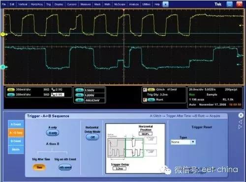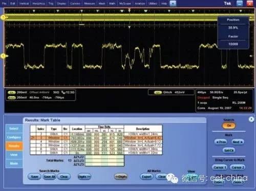 示波器是人们设计、制造或修理电子设备不可或缺的工具。在现今这个快节奏的世界里,工程师们需要利用目前最好的工具来快速准确地解决他们所遇到的测量难题。在工程师看来,示波器是成功应对现今测量难题的关键所在。现代数字示波器拥有可帮助节省时间的特性,如深存储和一系列分析工具等,可简化高速数字设计带来的挑战。下文分别细数了示波器或曾不为人知的12项功能。1、协议解码根据示波器波形显示进行串行总线手动解码既耗时又容易出错。在这一相对简单的I2C信号中,可能有问题存在。您能轻松找到这个问题吗?甚至还能说出该信号代表什么吗?要对该数据包进行手动解码,需寻找到包头、数据位及包尾。利用时钟状态(**)对所有数据信号状态(蓝色)进行对照确认,然后将其转换为十六进制数值。 ![]() 图1:示波器上的I2C信号 在此将手动解码与自动解码示例进行比较。只需定义时钟和数据处于哪些通道上以及定义用于确定逻辑值(“1”和“0”)的阈值,就可以让示波器获悉正通过总线传输的协议。在一瞬间,就可对串行数据进行解码并将其显示出来,说明总线波形显示中的起始位、地址位、数据位和结束位。对I2C总线而言,地址值和数据值能够以十六进制方式显示,或以二进制方式显示。 ![]() 图2:自动I2C解码 2、网络分析仪需测量回波损耗(Sdd11)或插入损耗(Sdd21),但却没有TDR或VNA,怎么办?您可用高带宽示波器进行一些近似于网络分析的测量,尽管这样做好像有些超出其使用范围,而且肯定有某些局限。传统的频率响应时间测试涉及对快脉冲的测量以及对响应FFT的查看。除这种测量外,您还可以通过一些相当基础的设置来测量回波损耗和插入损耗。 例如,一些高速标准(像PCI Express 3.0和USB 3.0)包括有这样的测量,一长串逻辑值“1”后接一长串“0”。这构成一种稳态条件或低频状态。然后,测试图案变为时钟或1010图案,又称为奈奎斯特图。对前后电压电平进行比较,得到一个标称插入损耗值。可采用更先进的技术以及自定义信号激励来提取其他详细信息。在一篇题为“在数字存储示波器上进行以太网微分回波损耗测量”的白皮书(www2.tek.com/cmswpt/tidetails.lotr?cs=wpp&ci=2748)上可找到有关某一程序的技术概览的佳作。 ![]() 图3:64个“1”及64个“0”后接“1010”的图形 3、在DVD驱动器上播放影片大型LCD屏幕还可用作什么呢?可以肯定的是,您可以在示波器上观看信号完整性分析指南,但更令人高兴的是,您还可以观看最近的电影(但是还不能观看3D视频)。4、滤波 您是否需要用高带宽示波器测量低频信号但又不想有高频噪音?许多示波器都具有数字信号处理功能,可进行滤波,包括低通滤波。下一次,您想在您12GHz示波器上测量100MHz时钟时,可使用带宽限制功能,以得到更佳的信噪比和更精确的测量值。5、宽带雷达测试数字示波器早已具备FFT功能。随着雷达和其他宽带RF系统进入数字领域,现在示波器已具备瞬态或宽频带宽RF信号分析功能。您可以对无外部降频转频器的宽带雷达、高数据速率卫星链路或跳频通信系统执行脉冲分析、数字解调和EVM测量。 ![]() 图4:显示宽带雷达信号的示波器6、改善垂直分辨率大部分示波器的A/D分辨率为8个比特。用不同的采集模式,可按如下所述,通过求相邻采样的平均值来提高垂直分辨率。那么,通过求平均值和采用高分辨率模式可将分辨率提高多少呢?理论上讲,增加值为0.5Log2N,其中N为相邻采样的平均数。实际情况是,2个字节的存储深度限制了这一增加。两个字节为16位。保留其中一位作为符号位,剩余的15位用作数据数值。舍入误差使第14位和第15位成为随机值,从而使实际限值变为13位。因此,改善可从约六个有效位开始,用高度过采样时可增至约13位。 ![]() 图5:提高垂直分辨率 7、基于示波器的信号发生器 由于许多示波器都装有计算机I/O端口,比如USB端口或以太网端口,因此可使用这些端口来生成测试信号。只需下载合适的软件(可在许多标准机构的网站上查找到)来激活测试模式,您就拥有了一台信号发生器。 8、测试文件 如果您想像大多数人那样在示波器上进行分析,则可能还需要有一些测试文件。了解许多集成软件分析工具中的测试报告功能,可为您节约一些时间。想要更高效,您可以通过远程控制仪表指令自动化分析和测试报告的操作。即便是基本型示波器也具备针对文件的省时功能,比如“保存全部”功能,只需按下一个按钮,即可保存截图、波形数据和设置文件。 ![]() 图6:文件测试报告功能的用途 9、智能检索 没有正确的检索工具的话,要在很长的波形记录中找到您感兴趣的事件可能会很耗时。如今,记录长度日渐超过100万数据点,要定位您的事件可能意味着需要浏览成千上万个信号活动屏。用软件搜索工具可简化对长记录的浏览。甚至有前置面板控制器,使您可快速进行缩放和平移操作,就像用DVR看视频一样。还可顺便自动标注每个定义事件的发生情况,以便在各事件之间快速移动。 ![]() 图7:长数据记录中标记的用途 10、触发 示波器的触发功能可在信号中的正确点进行同步水平扫描,对明确的信号检定而言,是不可缺少的。触发控制器允许您稳定重复波形并捕捉单次触发波形。在高速调试应用中,您的电路可能会工作99.999%或更长的时间。而正是.001%的时间会造成您的系统崩溃或正是您需要更详细分